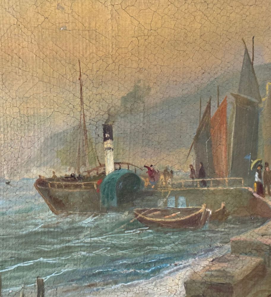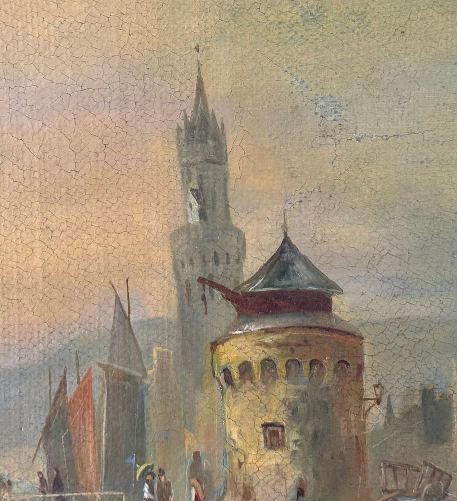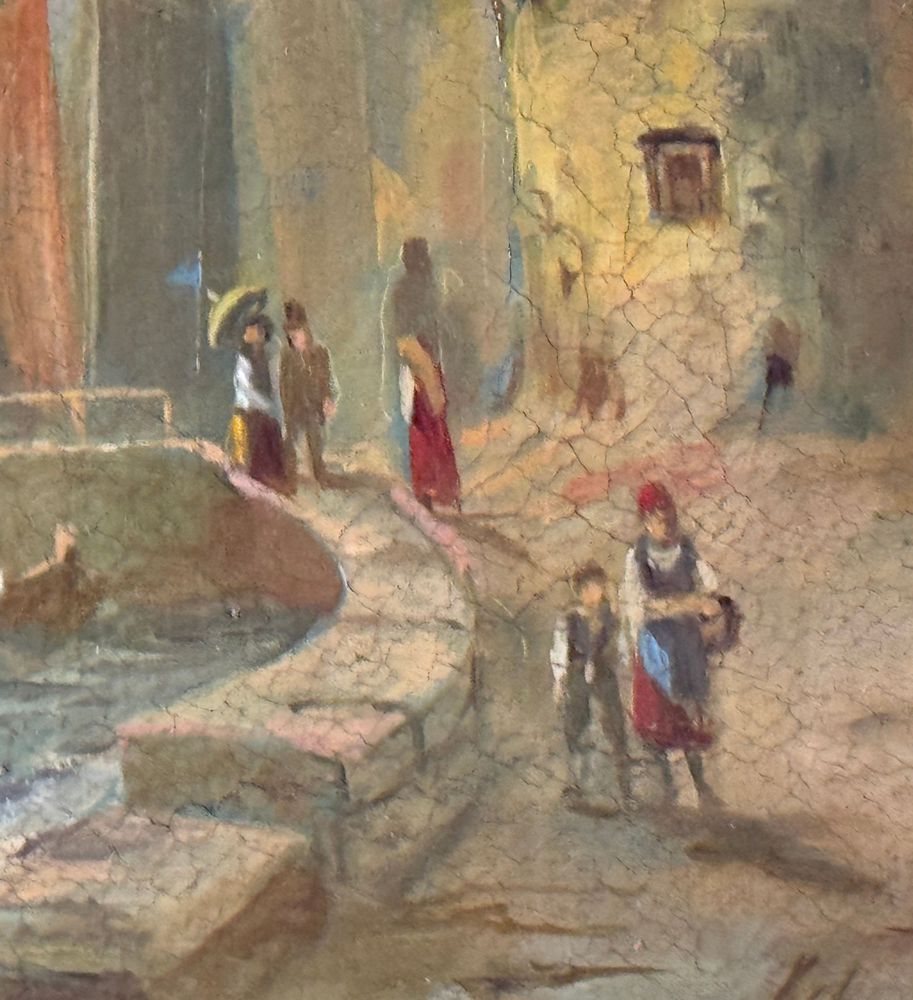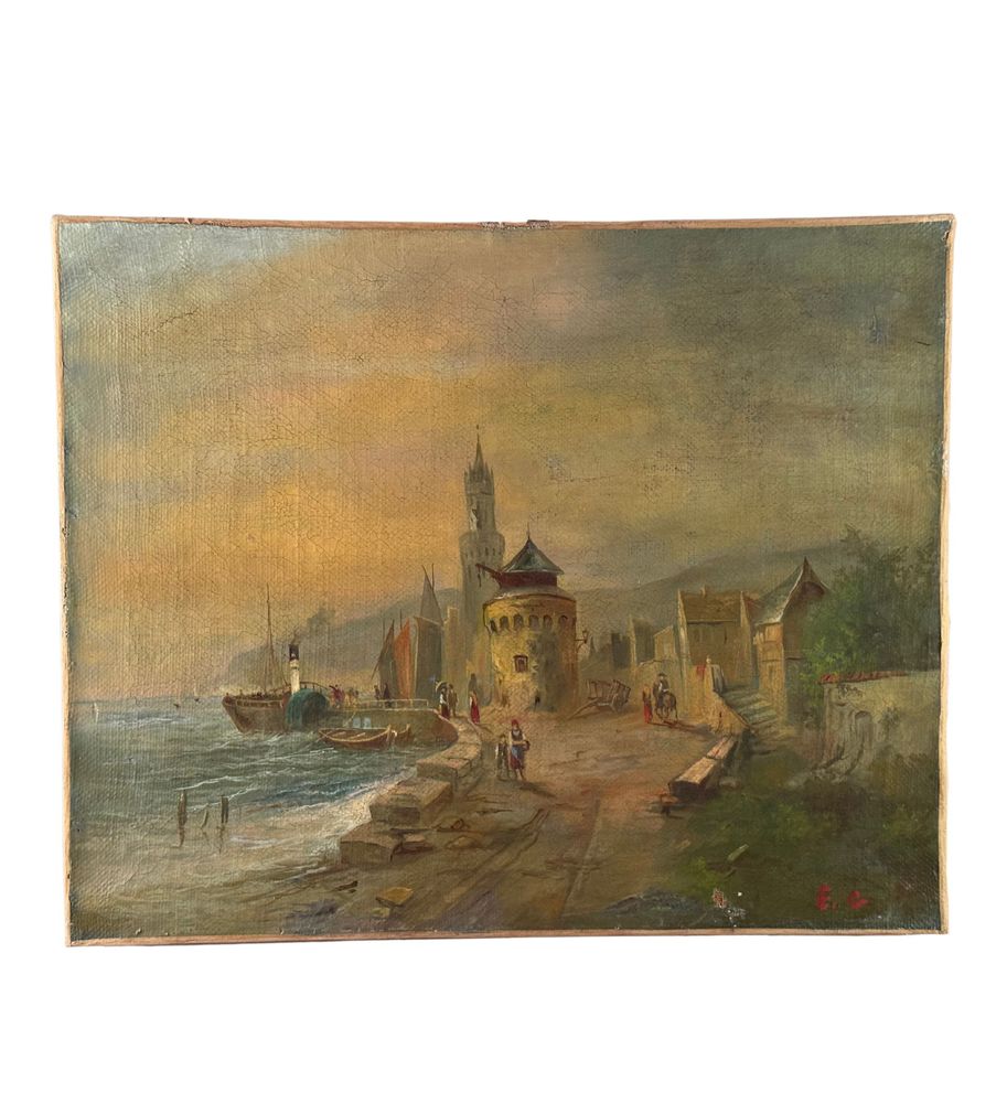 Dipinto olio su tela, periodo XIX/XX secolo scuola Italiana, raffigurante Scena portuale. Dimensioni: 73x59 cm. Da artista anonimo. Opera in buone condizioni.