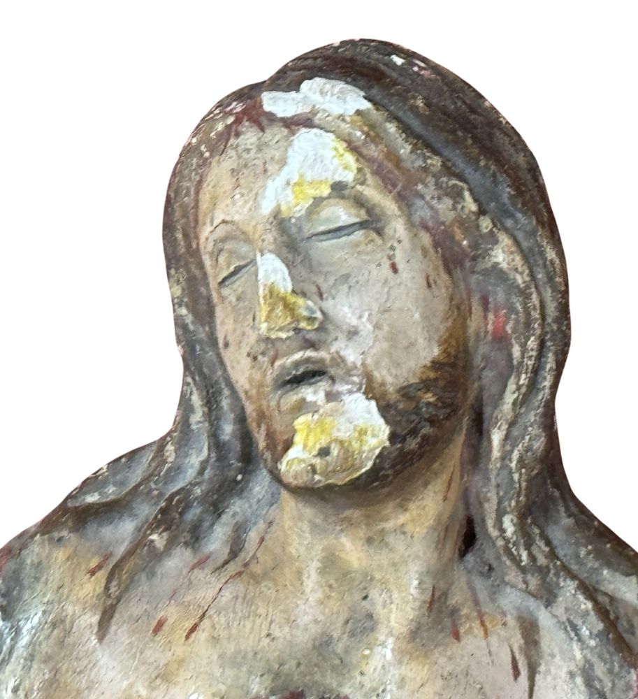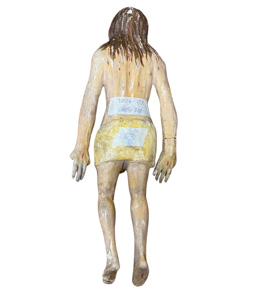 Scultura lignea, periodo XVIII secolo raffigurante Cristo. Dimensioni: h40x16x7 cm. Scultura in discrete condizioni. Difetti e mancanze.