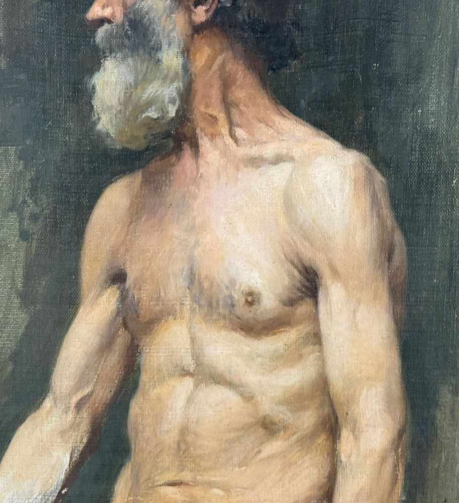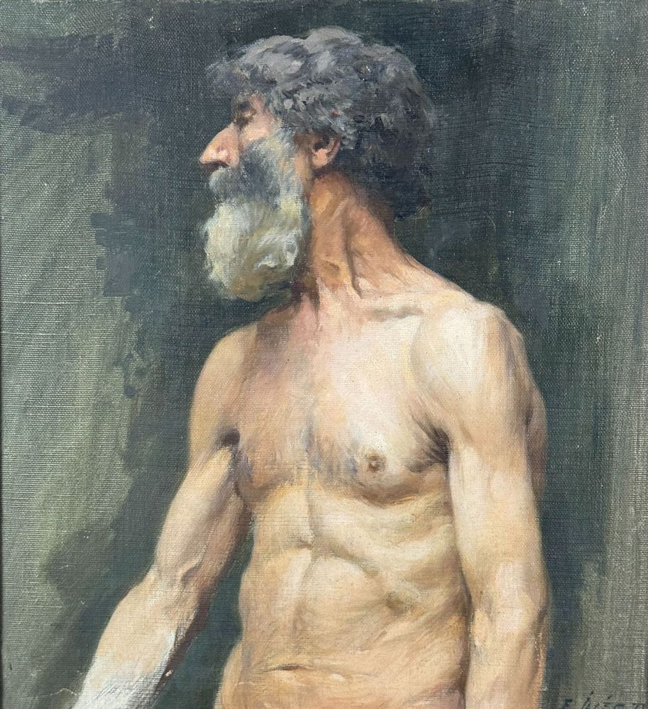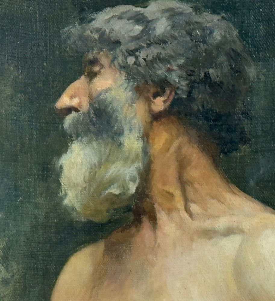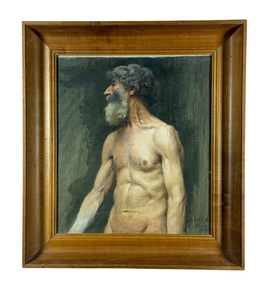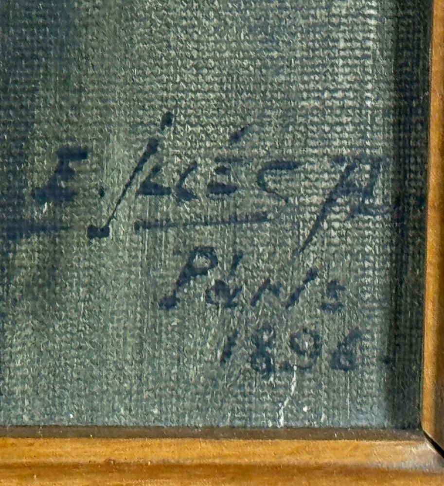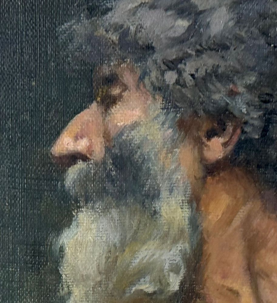 Dipinto olio su tela applicata su cartoncino, periodo XIX secolo scuola Francese, raffigurante Ritratto di uomo. Dimensioni compreso cornice: 48x43 cm. Diemnsioni interno cornice: 32x37 cm. Reca firma in basso a destra da artista non identificato. Opera in buone condizioni.