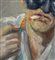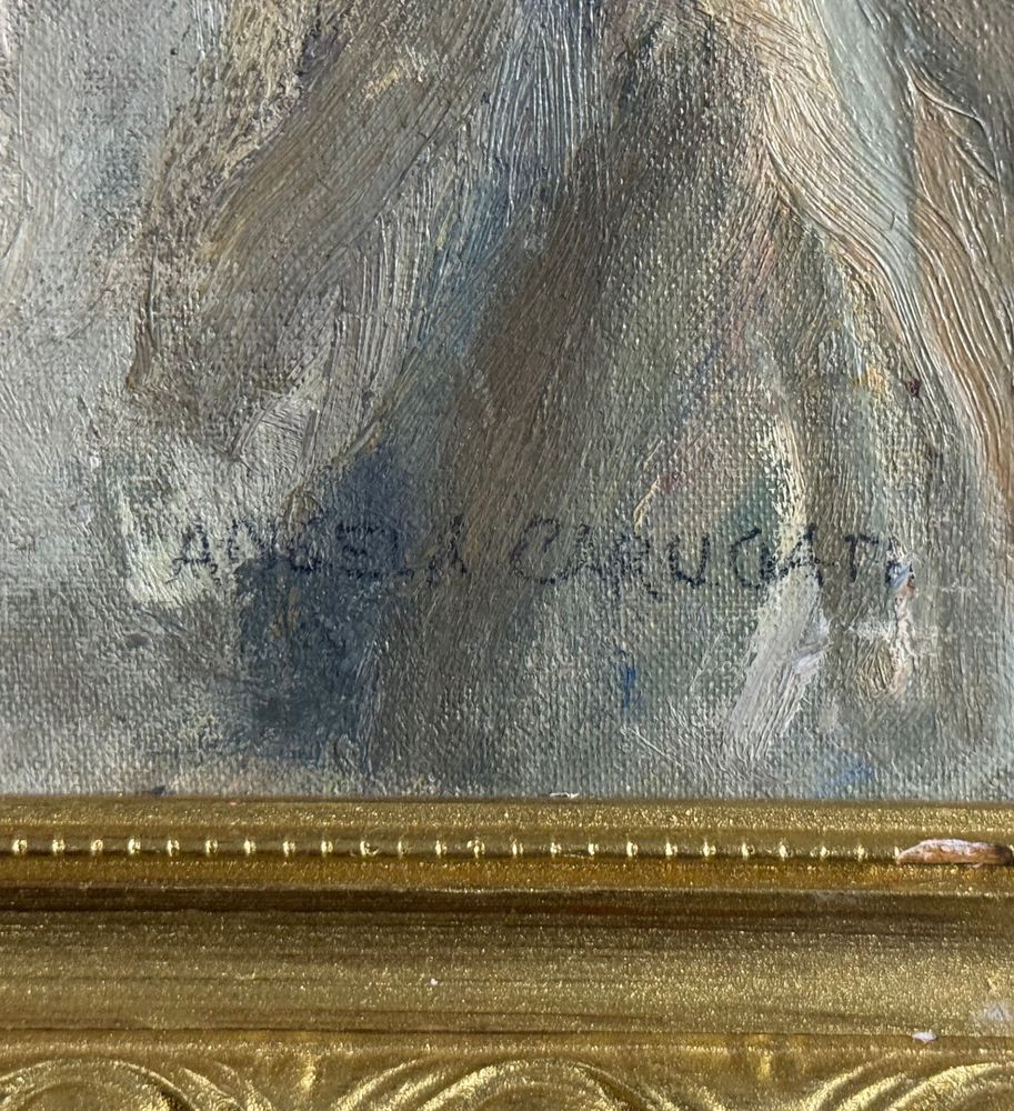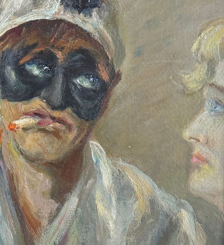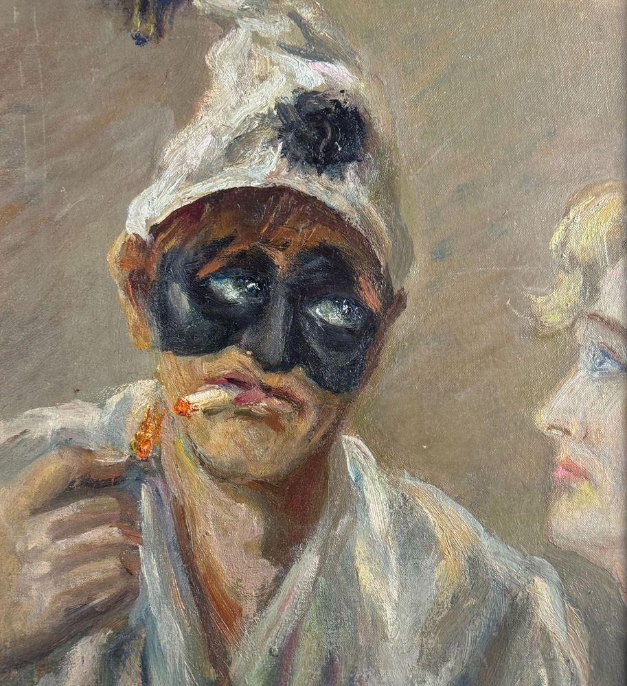 Dipinto olio su cartoncino, periodo XX secolo scuola Italiana, raffigurante Pulcinella. Dimensioni compreso cornice: 36x40 cm. Dimensioni interno cornice: 30x35 cm. Reca firma in basso a destra da Angela Carugati. Opera in buone condizioni.