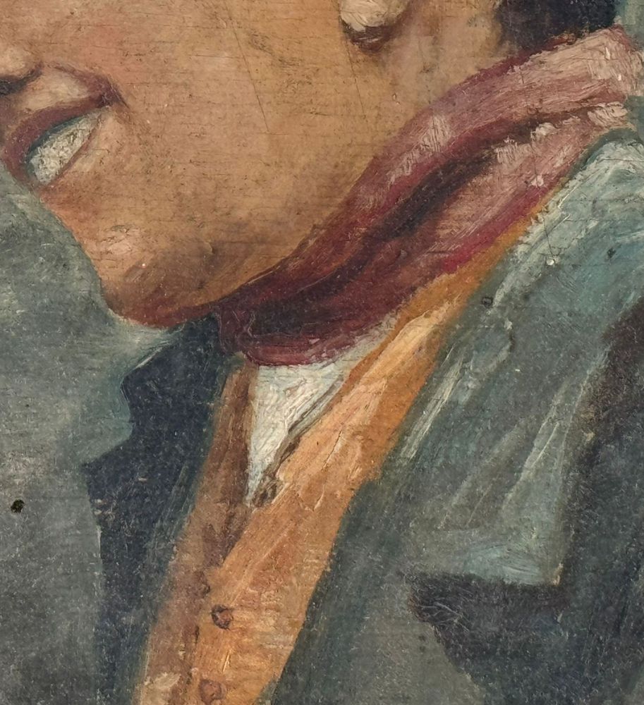 Coppia di dipinti olio su tavola, periodo XX secolo scuola Italiana, raffiguranti Scugnizzo Napoletano e Uomo con pipa. Dimensioni compreso cornice: 24x28 cm cadauno. Dimensioni interno cornice: 16x20 cm cadauno. Da artista anonimo. Opere in buone condizioni.