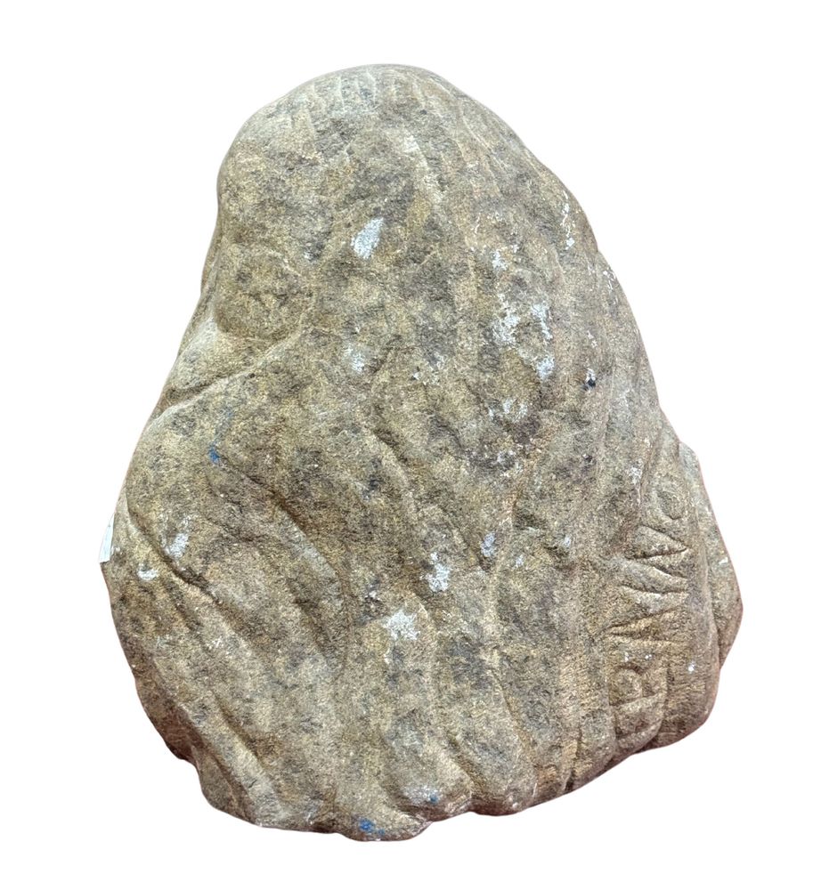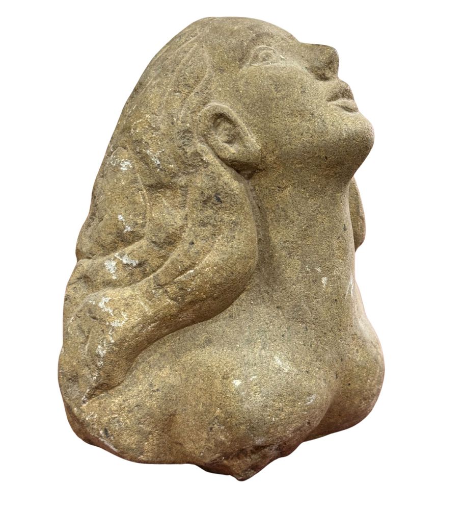 Scultura in pietra, periodo XIX secolo, raffigurante Volto di donna con sguardo rivolto verso l'alto. Dimensioni: h24x15x22 cm. In buone condizioni.