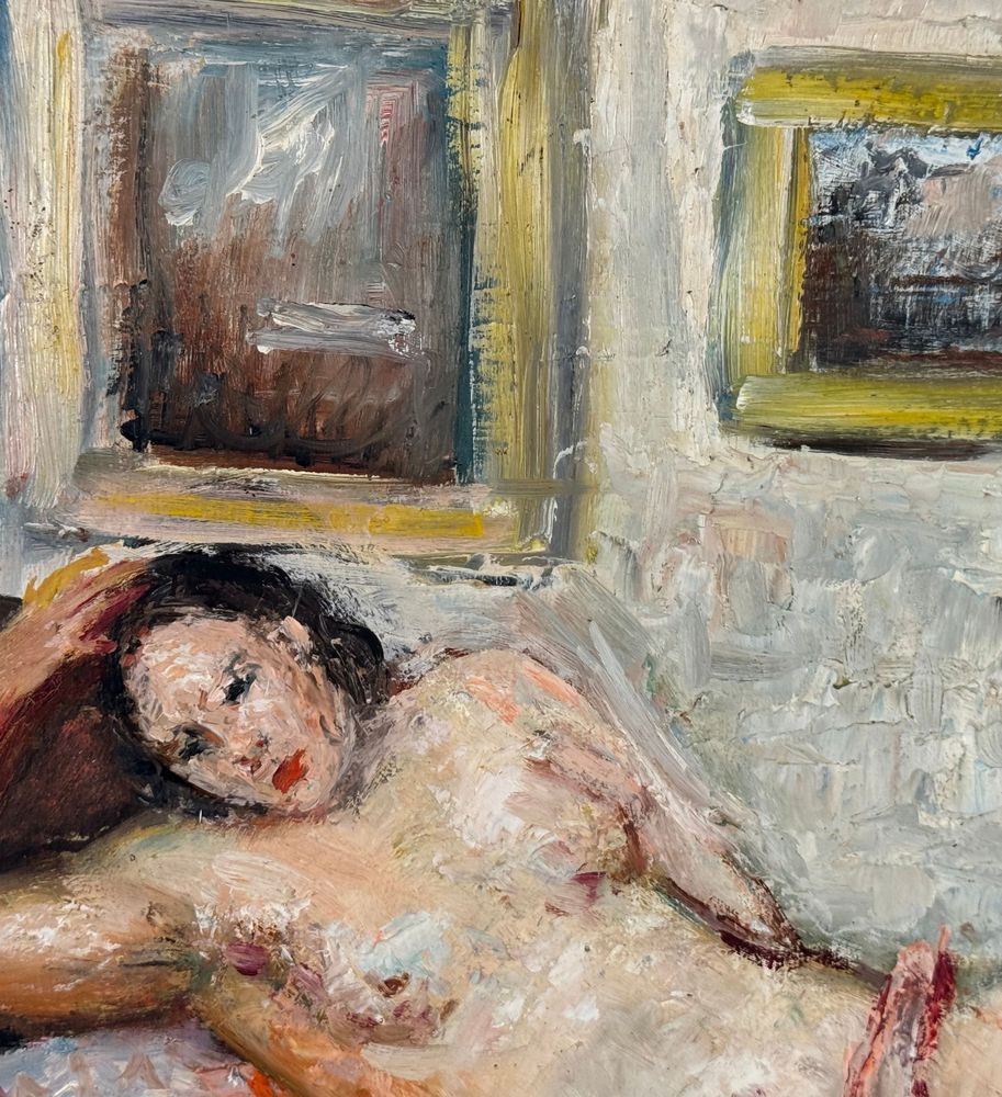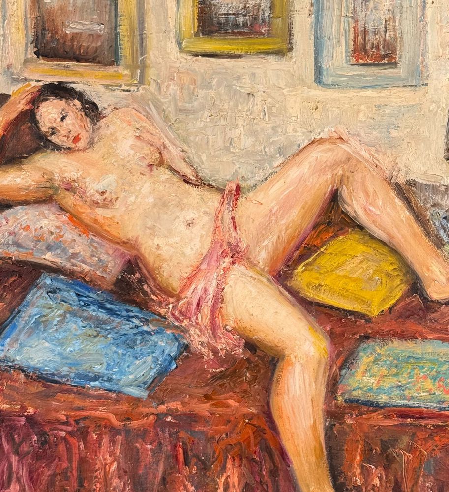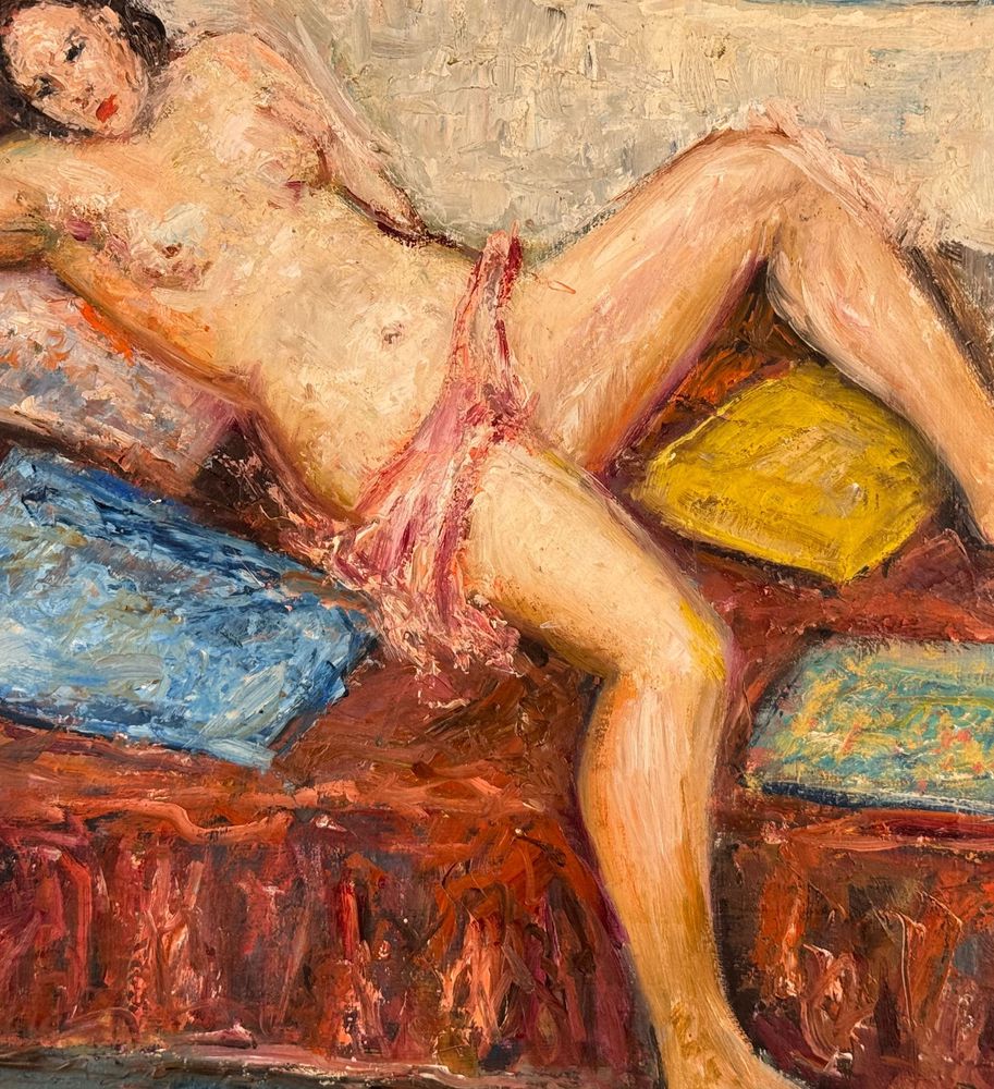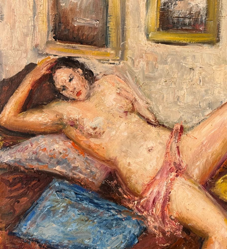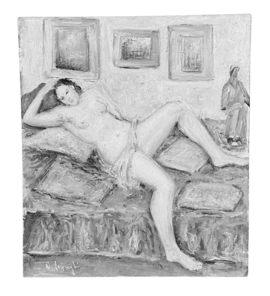 Dipinto olio su cartoncino, periodo XX secolo scuola Italiana, raffigurante Nudo di donna. Dimensioni: 41x46 cm. Reca firma in basso a sinistra da artista non identificato. Opera in buone condizioni.