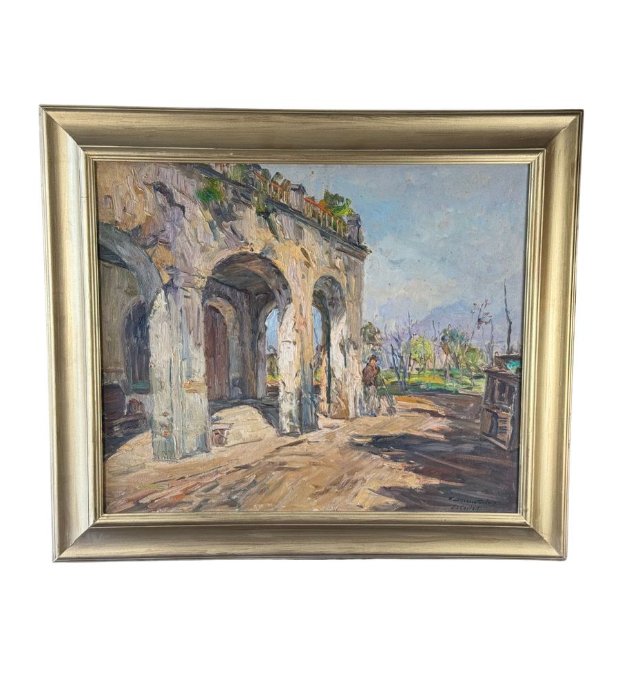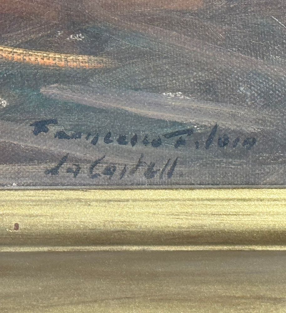 Dipinto olio su tela, periodo XX secolo, scuola Italiana, raffigurante Paesaggio di campagna. Dimensioni compreso cornice: 74x64 cm. Dimensioni interno cornice: 60x50 cm. Reca firma in basso a sinistra da Francesco Filosa (1910). Opera in buone condizioni.