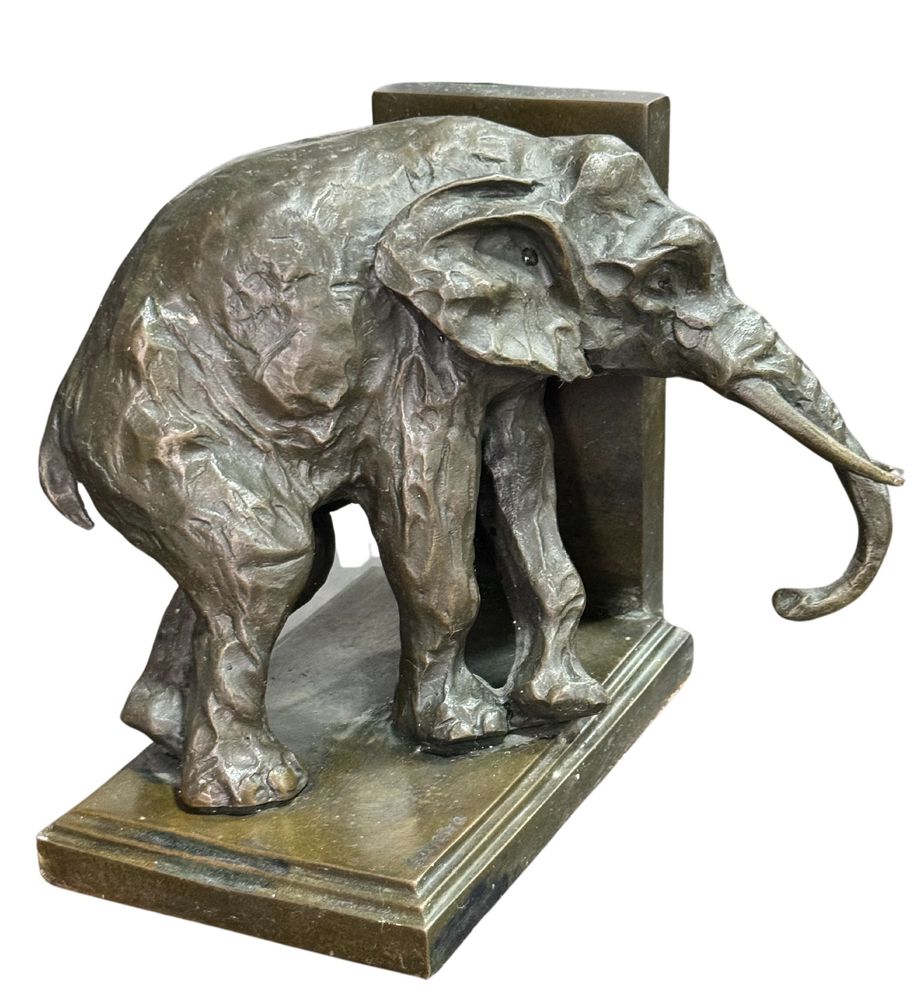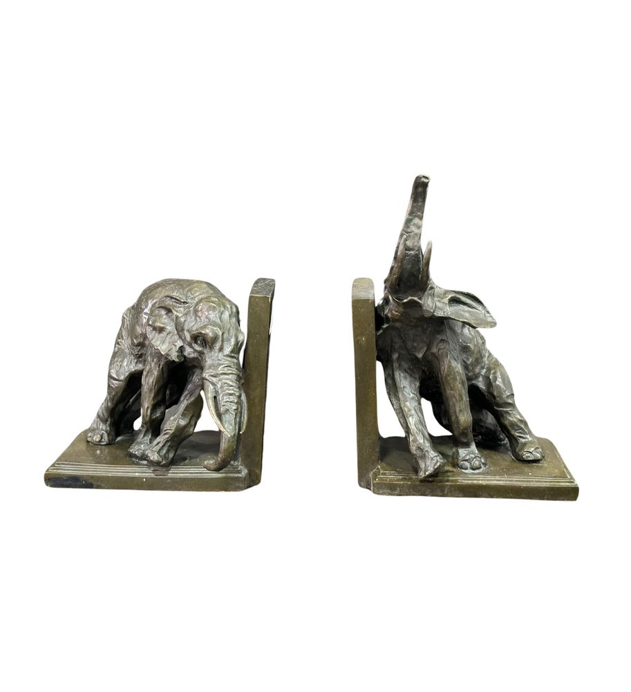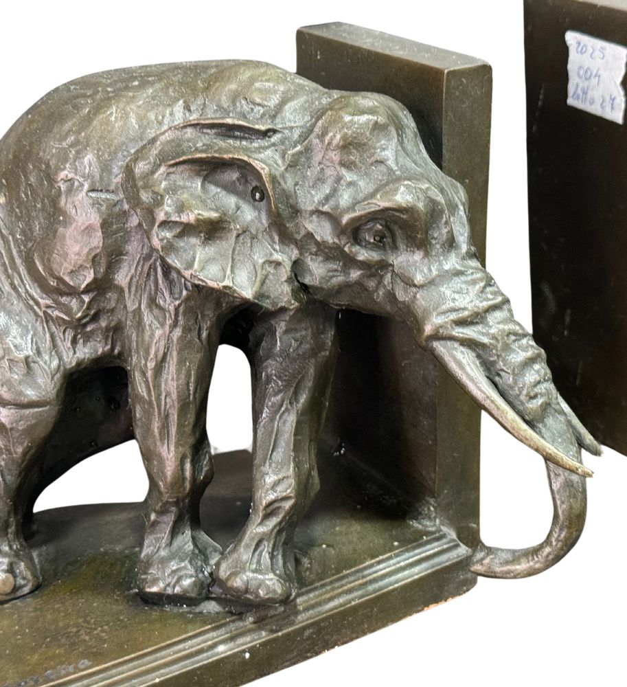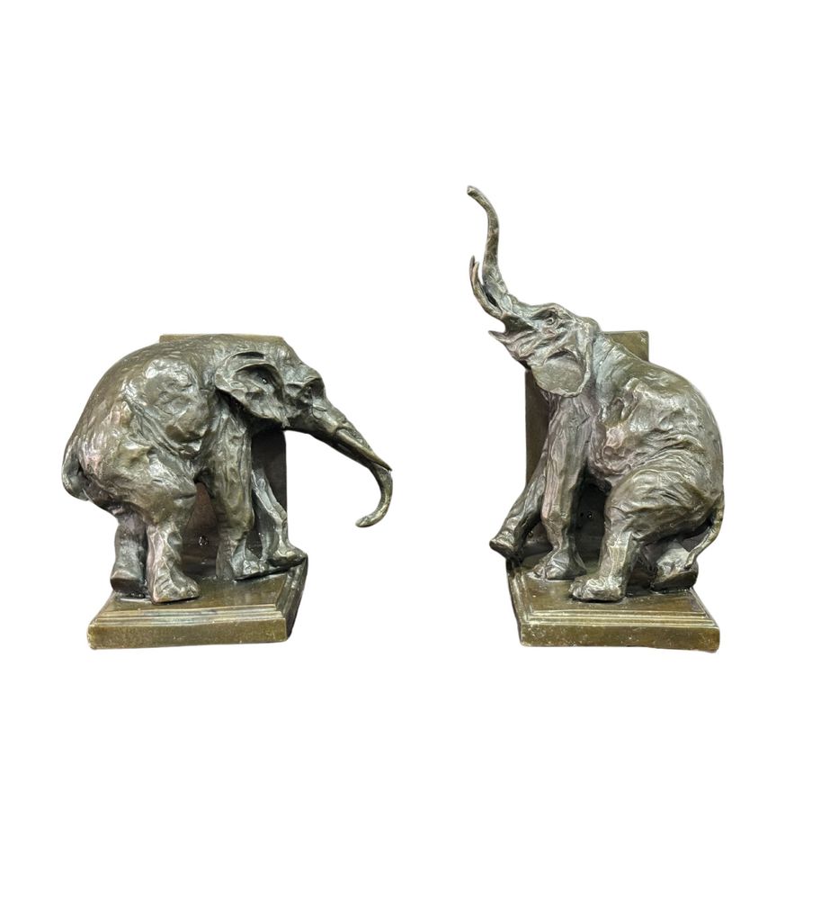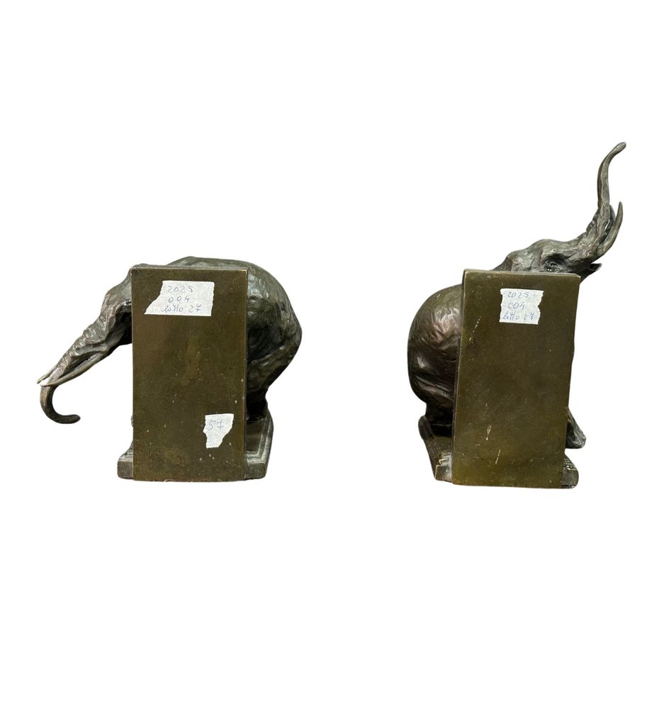 Coppia di sculture in bronzo a cera persa, periodo XX secolo, raffigurante Elefanti. Dimensioni cadauno: h18x18x16 cm. Sculture in buone condizioni. Reca firma sulla base.