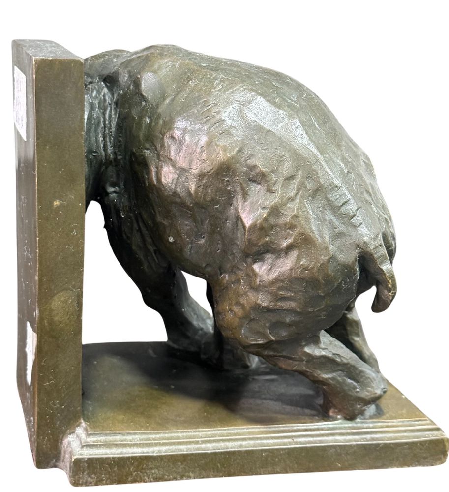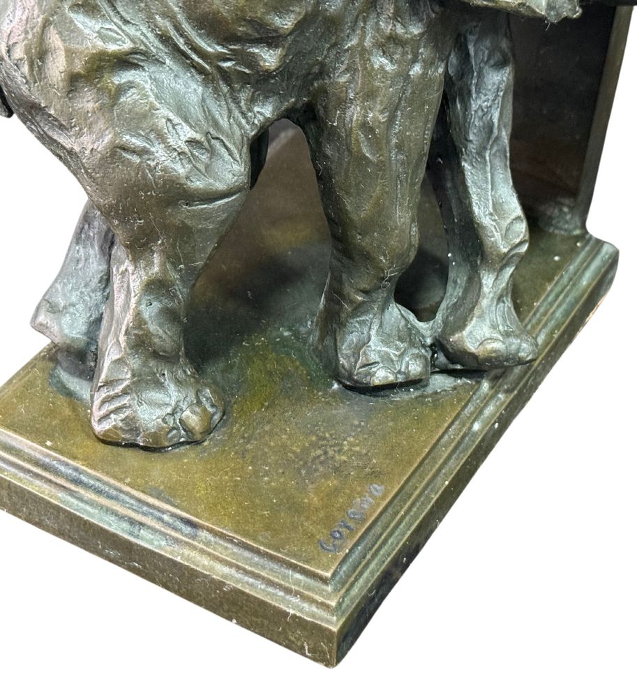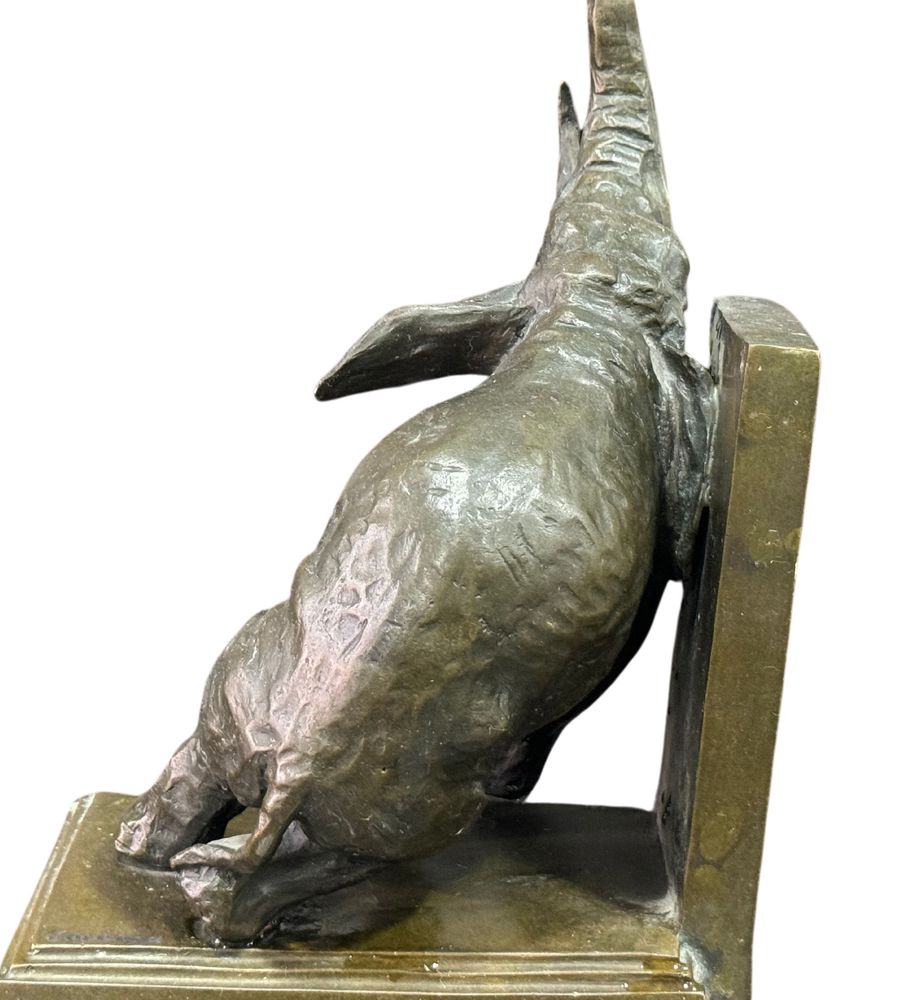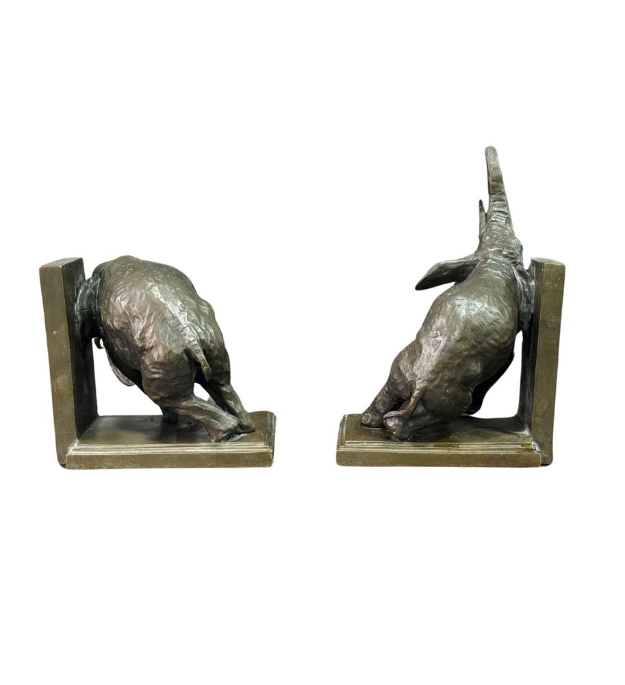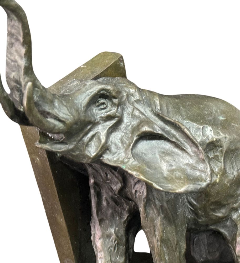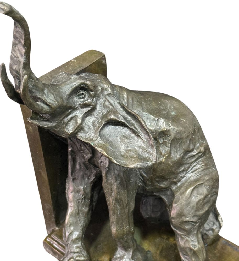 Coppia di sculture in bronzo a cera persa, periodo XX secolo, raffigurante Elefanti. Dimensioni cadauno: h18x18x16 cm. Sculture in buone condizioni. Reca firma sulla base.
