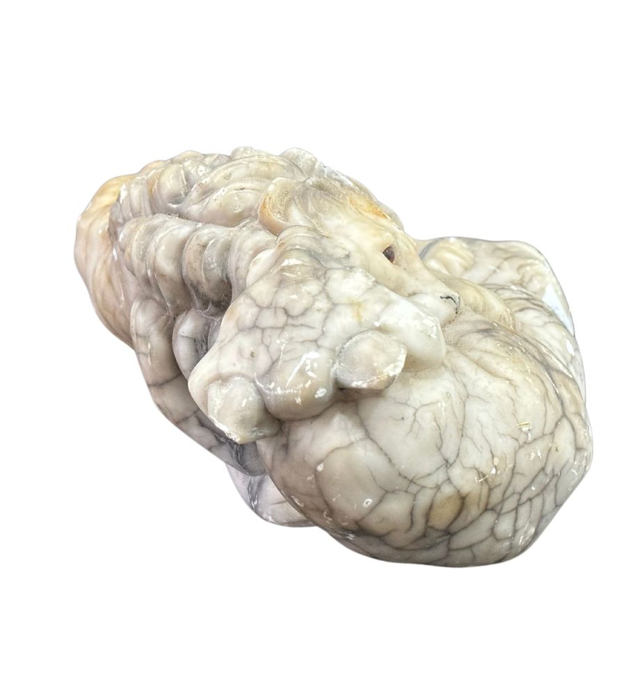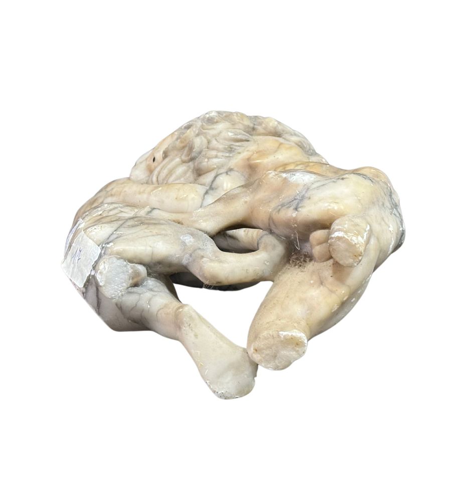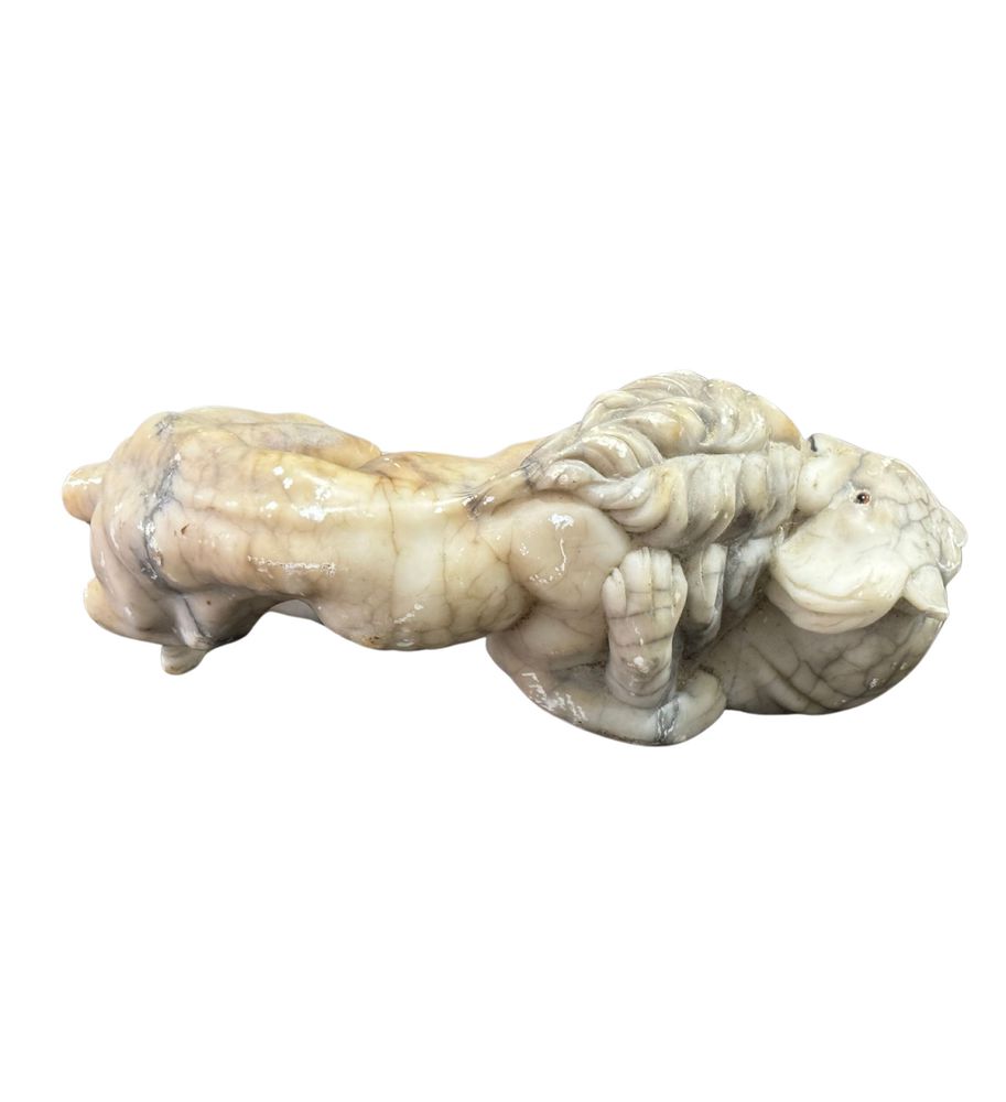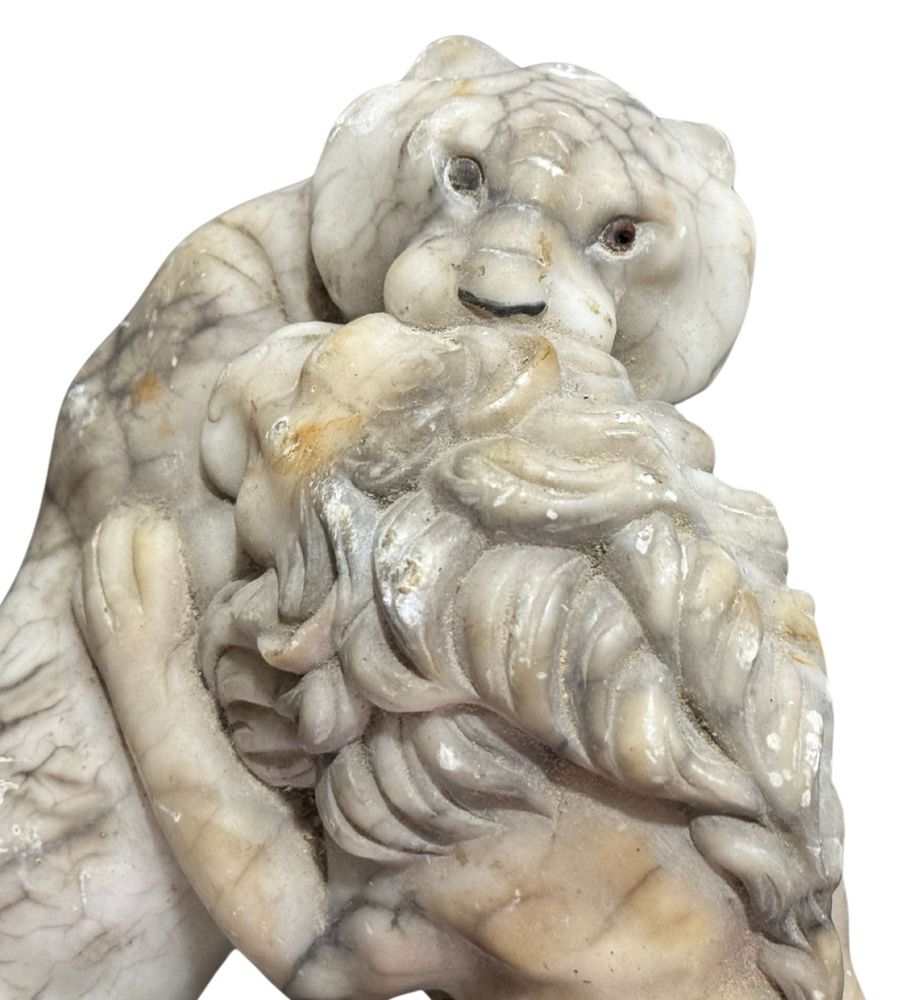 Scultura in marmo, periodo XIX secolo, raffigurante Coppia di leoni. Dimensioni: h18x34x12 cm. Scultura in discrete condizioni, segni di vissuto e mancanze come da foto allegate.
