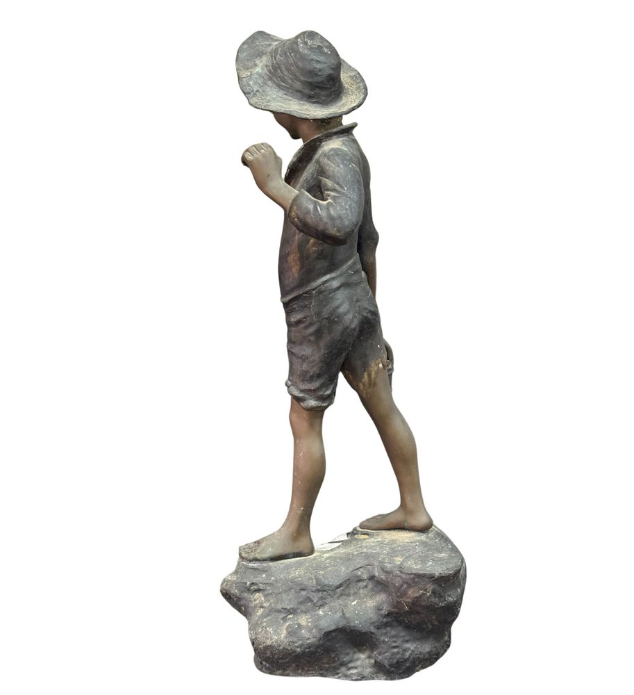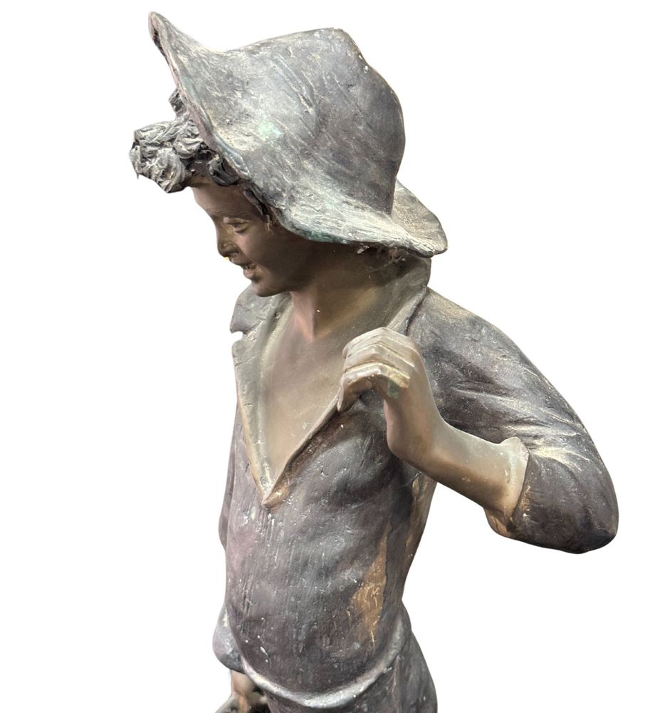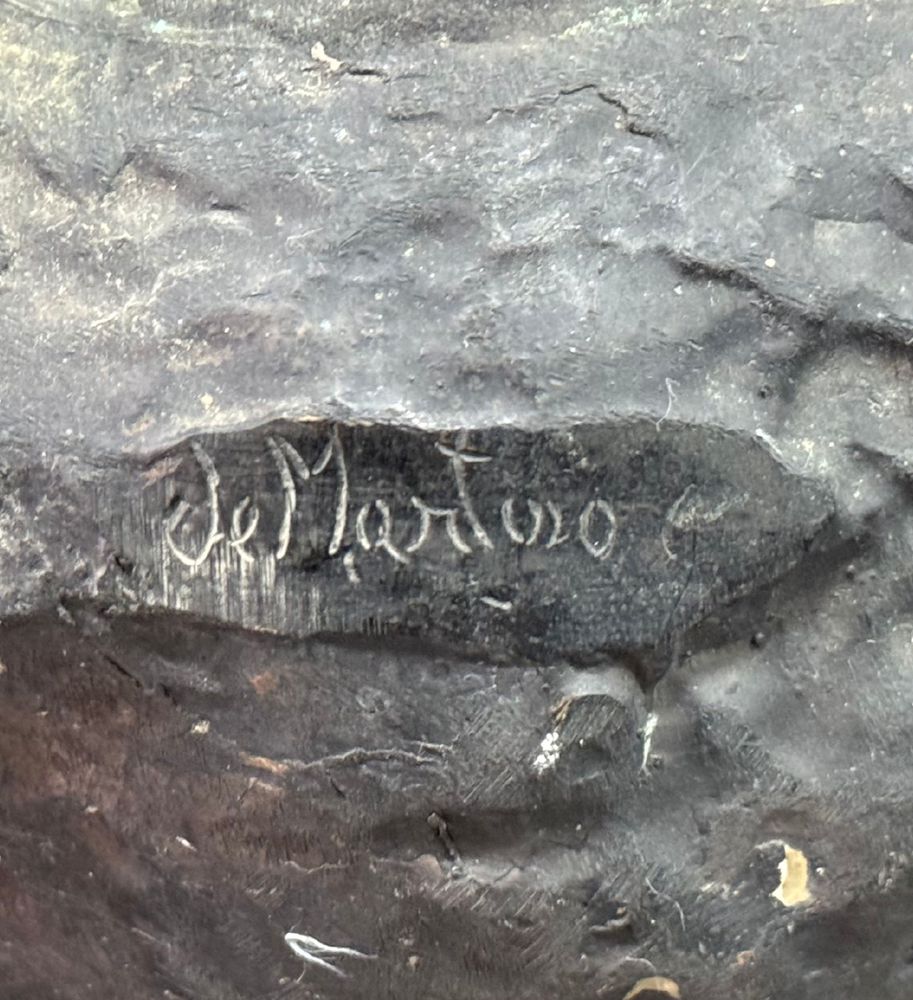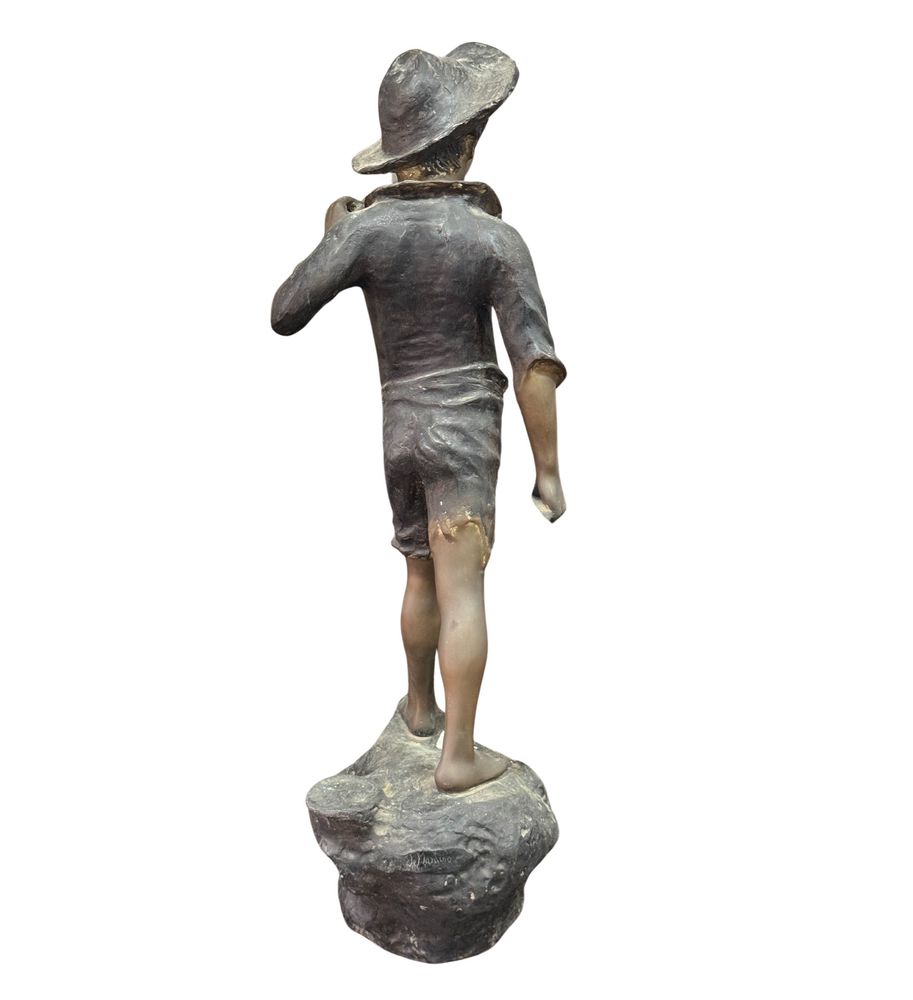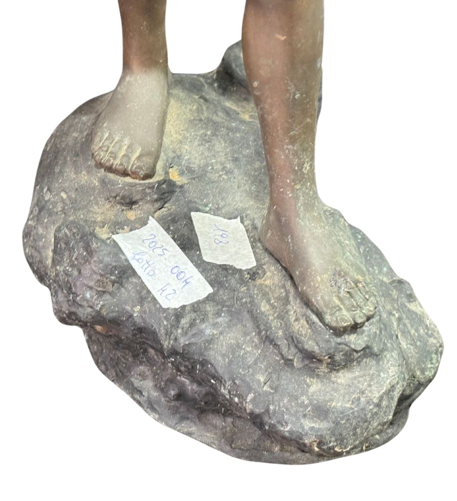 Scultura in bronzo a cera persa, periodo XX secolo, raffigurante Pescatore napoletano. Dimensioni: h70x30x20 cm. Scultura in buone condizioni. Reca firma De Martino.
