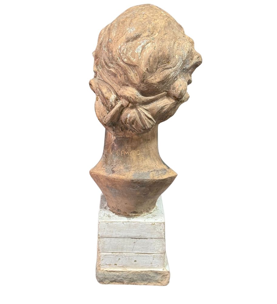 Scultura in terracotta, periodo XX secolo, raffigurante La fortuna. Dimensioni: h47x16x21 cm. Scultura in buone condizioni. Reca firma Dal modello di V. Gemito.