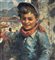 Dipinto olio su tela, periodo XX secolo scuola Italiana, raffigurante Scena di mercatino con personaggi. Dimensioni compreso cornice: 92x72 cm. Dimensioni interno cornice: 80x60 cm. Reca firma in basso a sinistra da artista non identificato. Opera in buone condizioni.