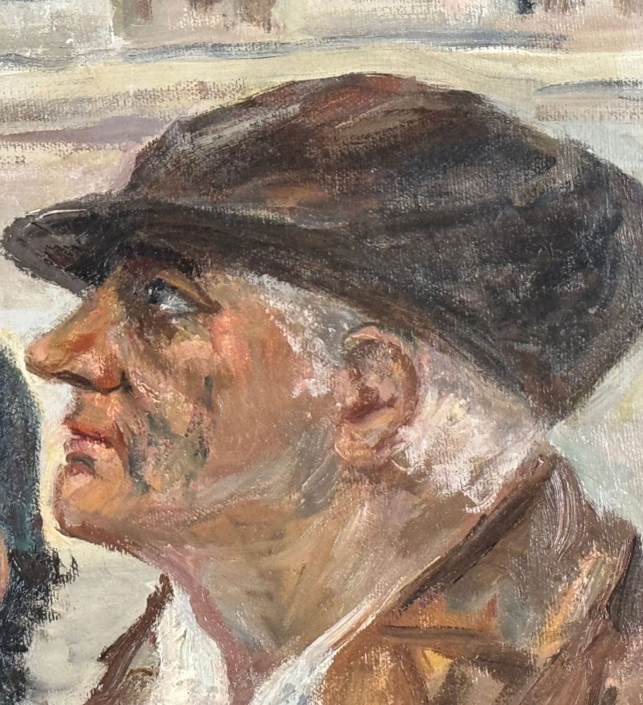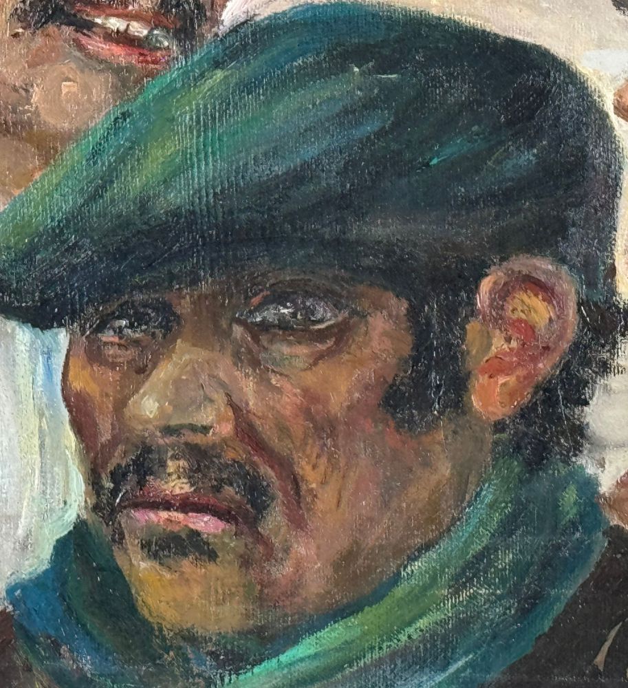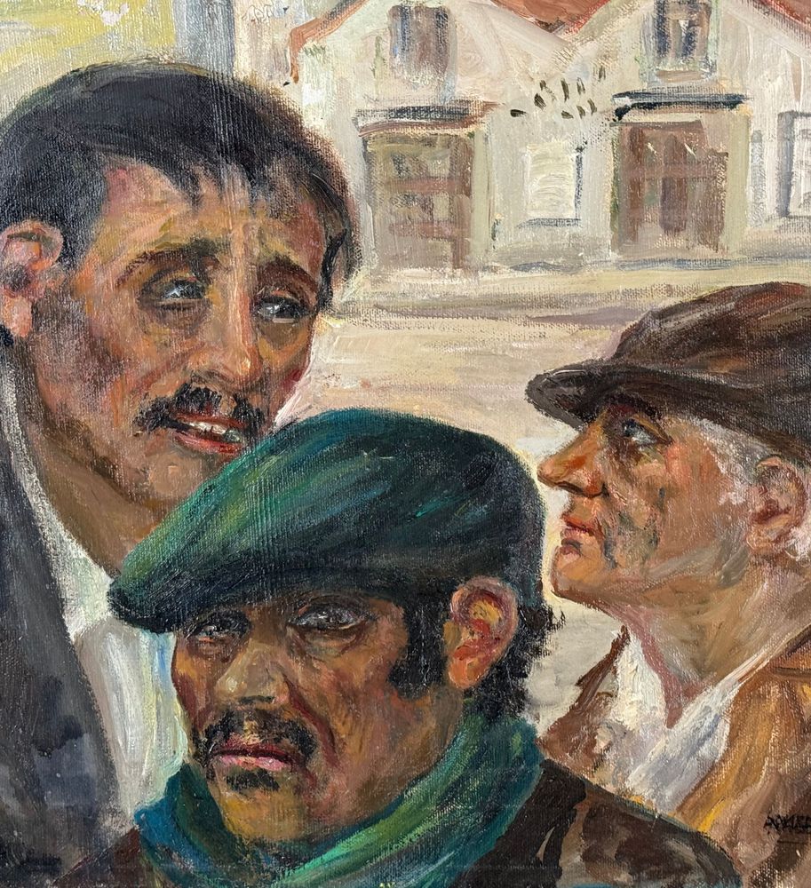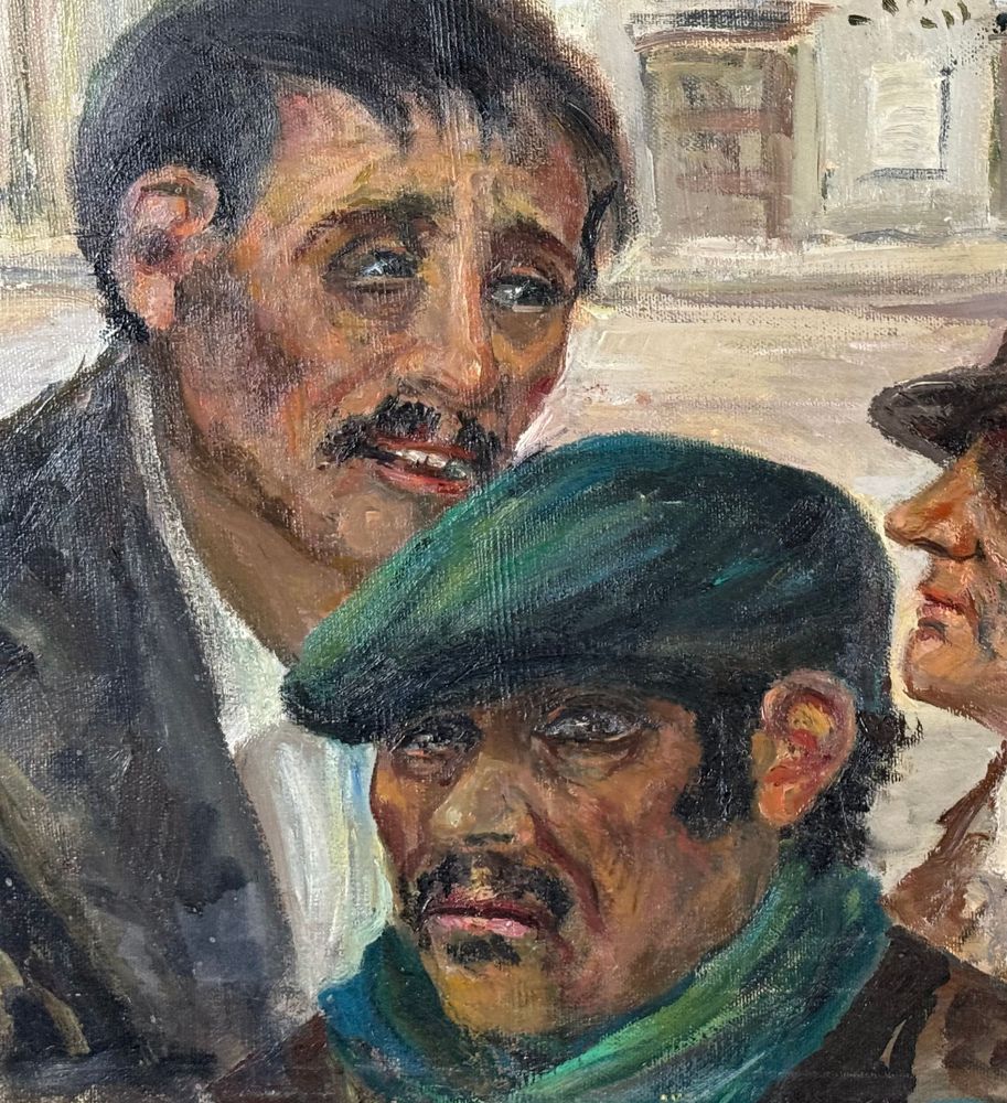 Dipinto olio su tela, periodo XX secolo scuola Italiana, raffigurante Tre personaggi. Dimensioni compreso cornice: 69x59 cm. Dimensioni interno cornice: 50x40 cm. Reca firma in basso a destra da Angela Carugati. Opera in buone condizioni.
