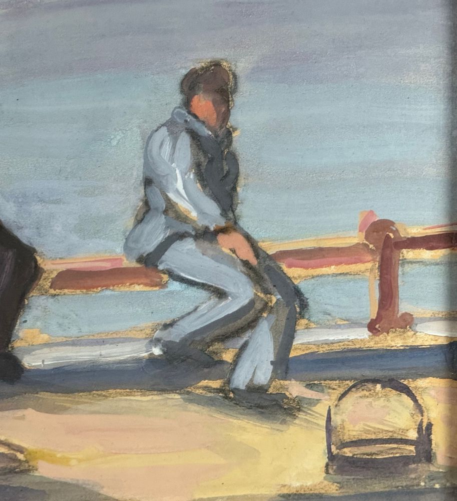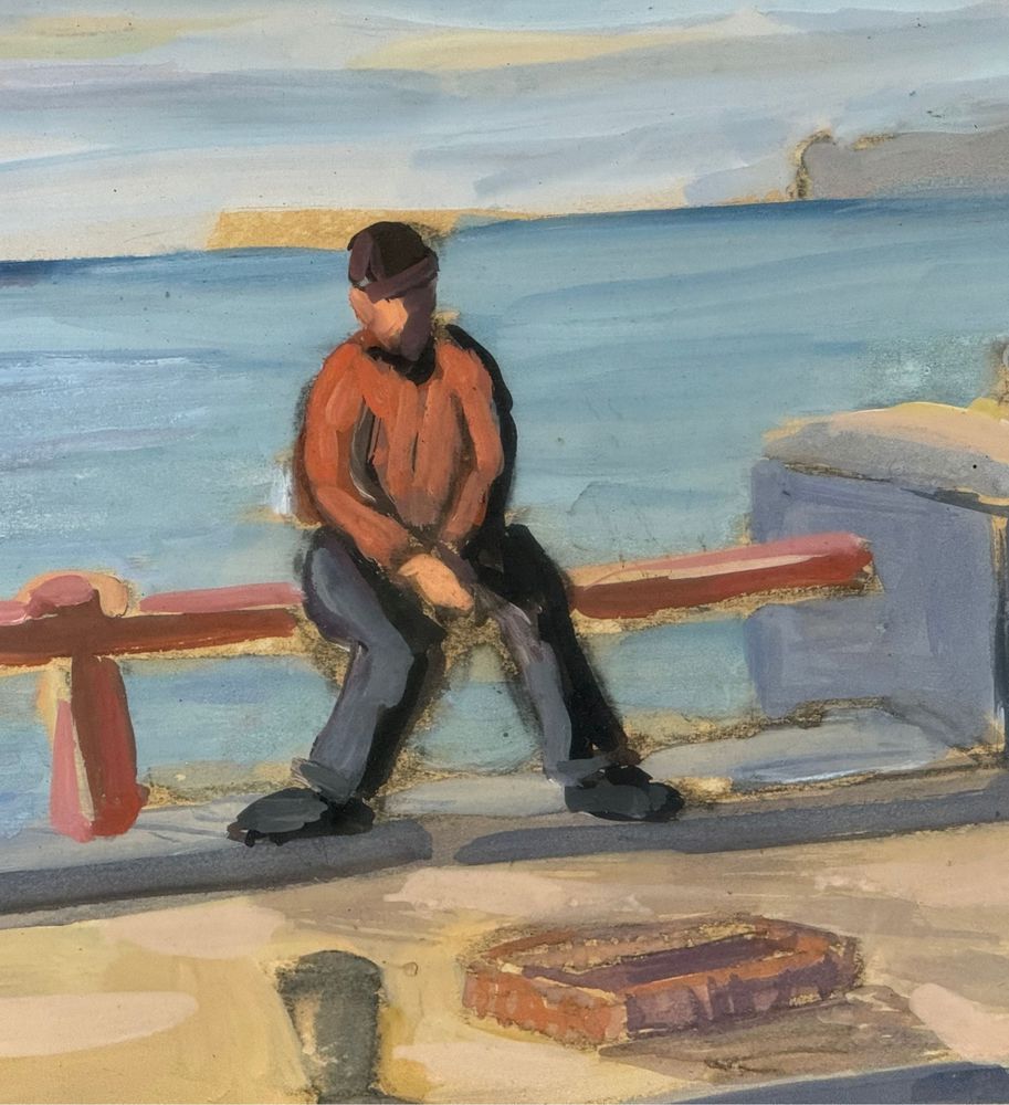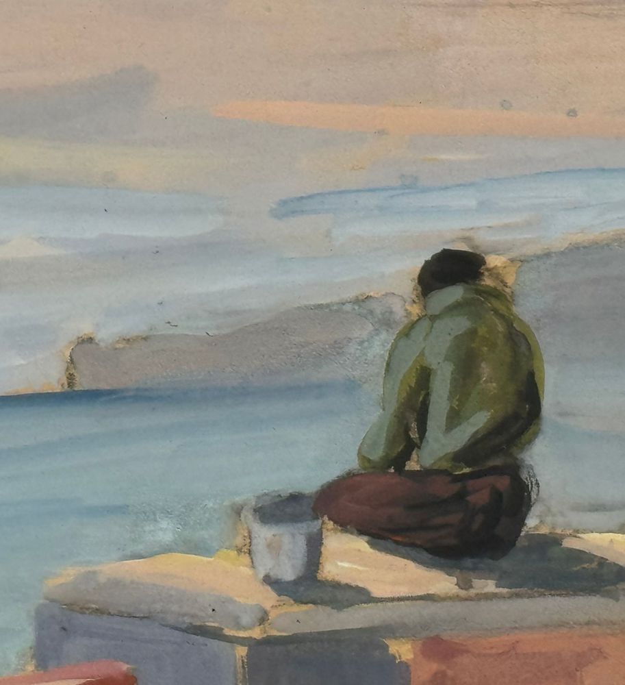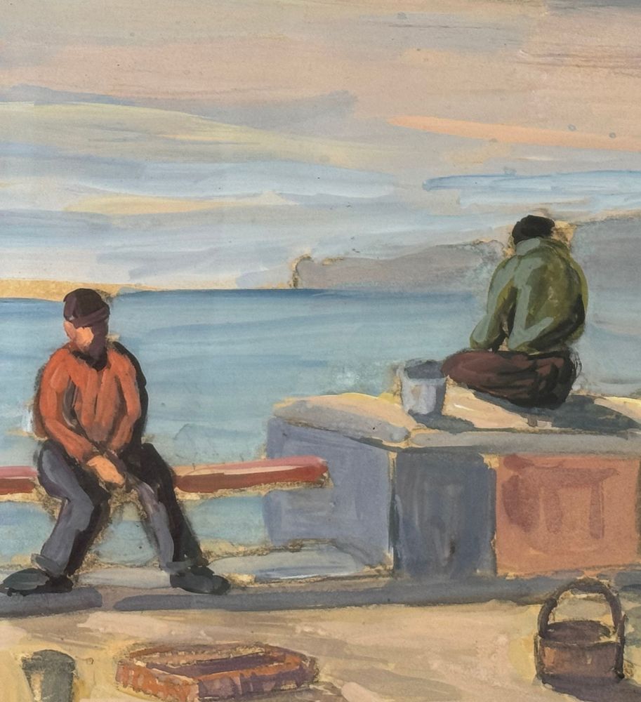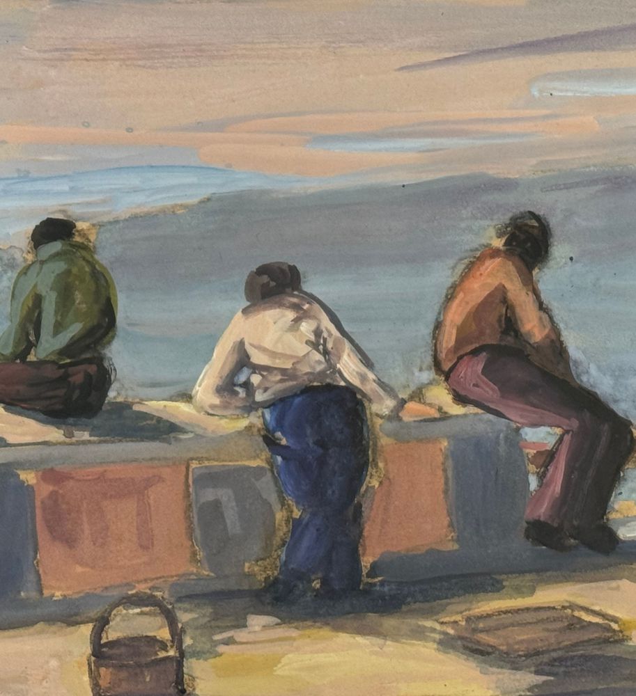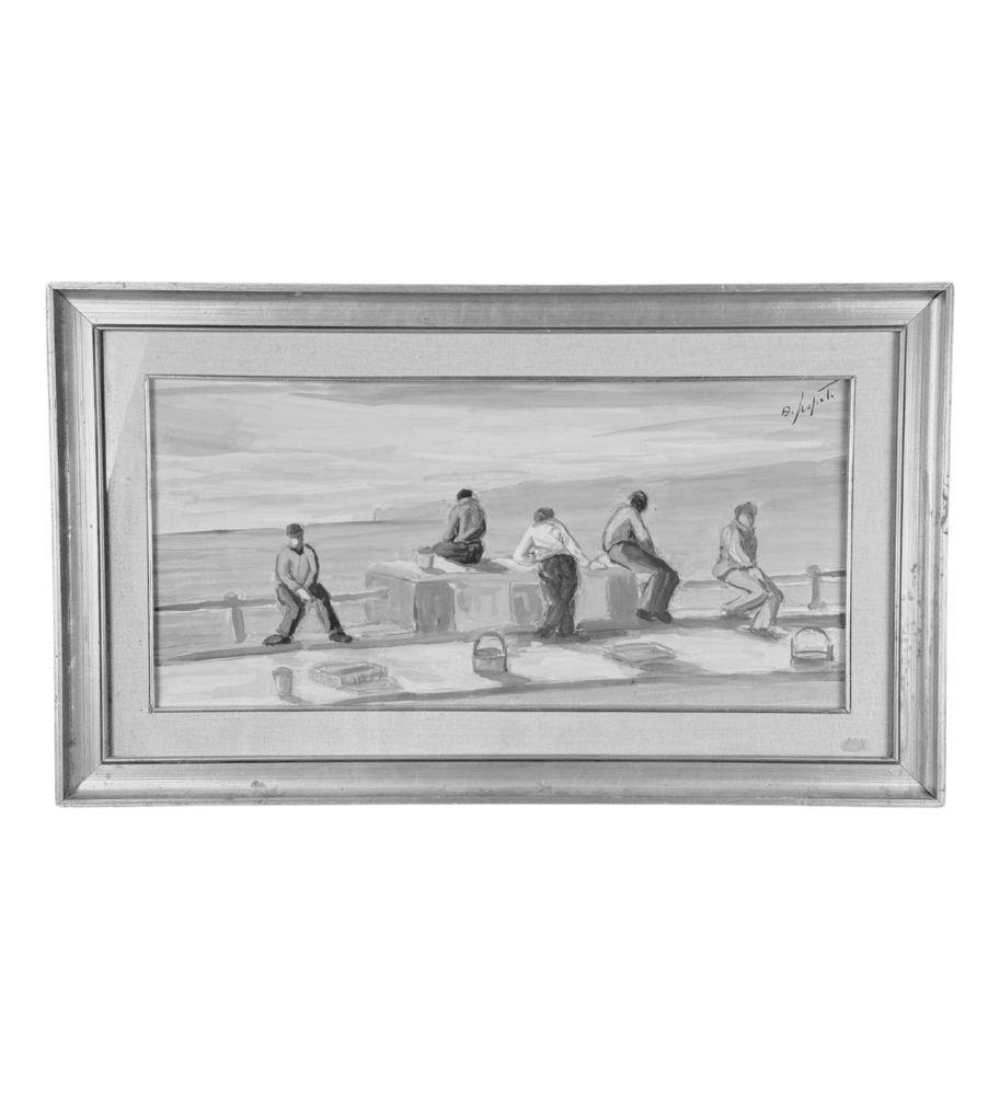 Tempera su carta, periodo XX secolo scuola Italiana, raffigurante Pescatori a Via Caracciolo. Dimensioni compreso cornice: 94x55 cm. Dimensioni interno cornice: 75x36 cm. Reca firma in alto a destra Antonio Scopato. Opera in buone condizioni.