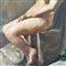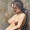 Dipinto olio su tela, periodo XIX/XX secolo raffigurante Nudo di donna seduta, attribuito a Gino Piccioni (1873 - 1941) Dimensioni interno cornice: 75,5 x 57 cm. Da artista anonimo.