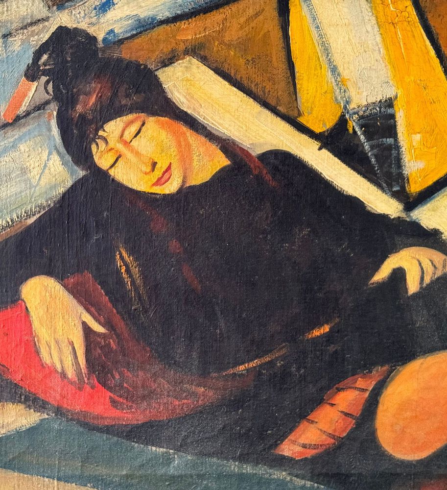Dipinto olio su tela, periodo XX secolo scuola Italiana, raffigurante Figura astratta. Dimensioni: 80x100 cm. Da artista anonimo. Opera in buone condizioni.