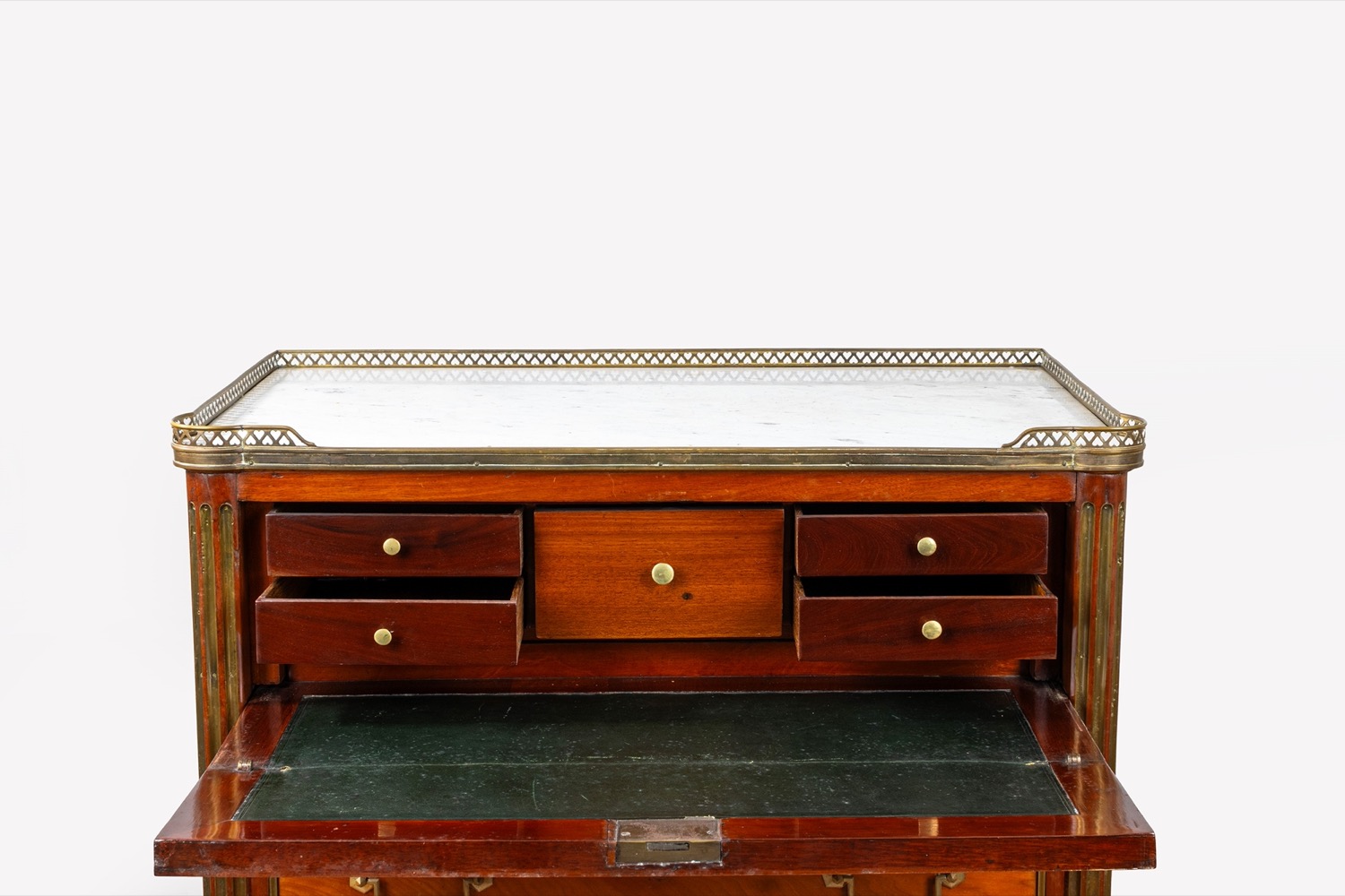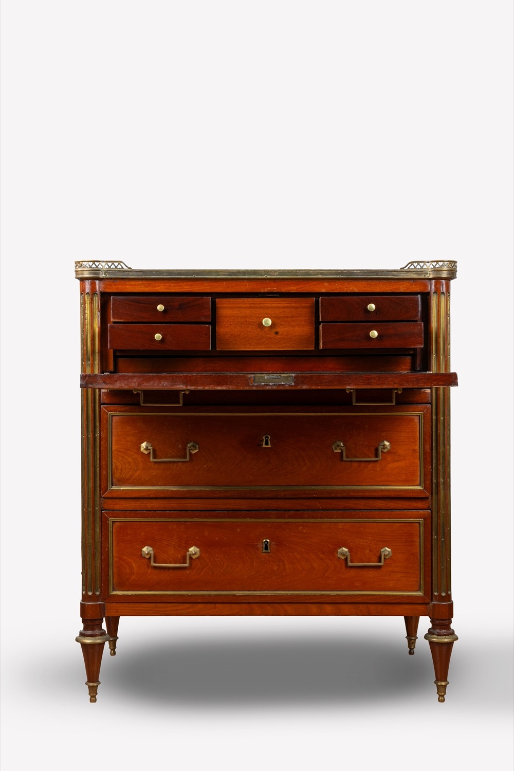 Cassettone con scrittoio lastronato in mogano, secolo XIX