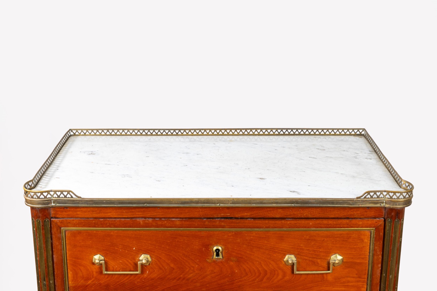 fronte con tre cassetti, di cui il superiore apribile a scrittoio e celante quattro piccoli tiretti laterali ed uno centrale