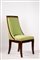 schienale squadrato, gambe a sciabola, decorata da applicazioni in bronzo a motivo floreale, imbottita e rivestita in tessuto verde acquaschienale squadrato, gambe a sciabola, decorata da applicazioni in bronzo a motivo floreale, imbottita e rivestita in tessuto verde acqua
