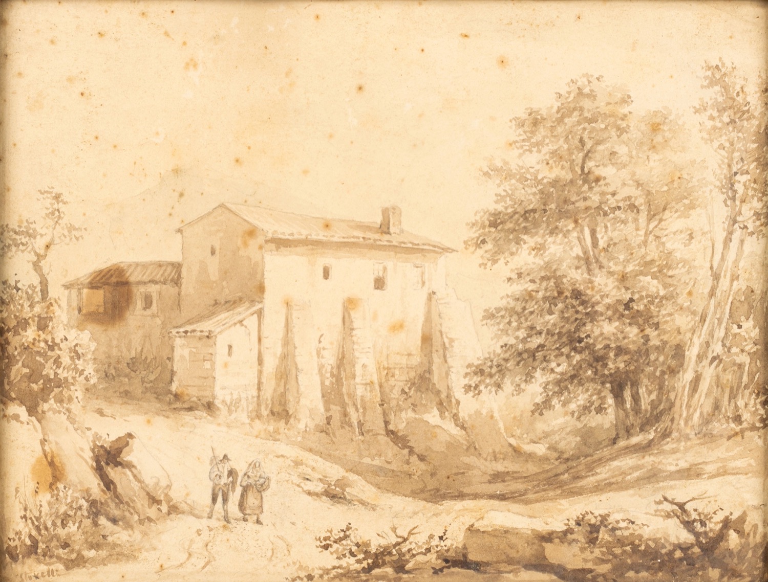 Felice Storelli (Torino 1778-Parigi 1854) - Paesaggio con viandanti; Paesaggio con pescatori