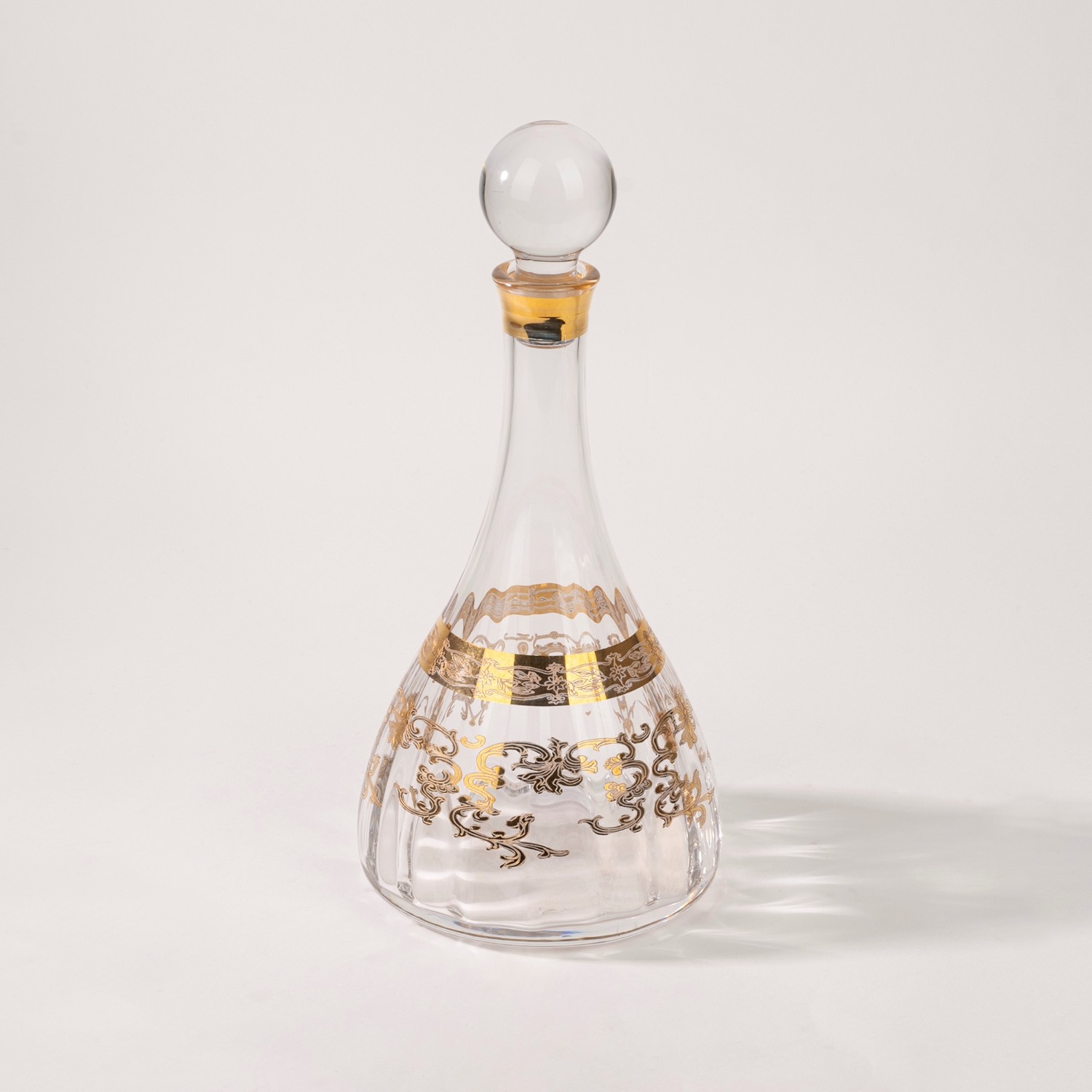 corpo sfaccettato con decorazioni dorate a fasce e volutecorpo sfaccettato con decorazioni dorate a fasce e volute