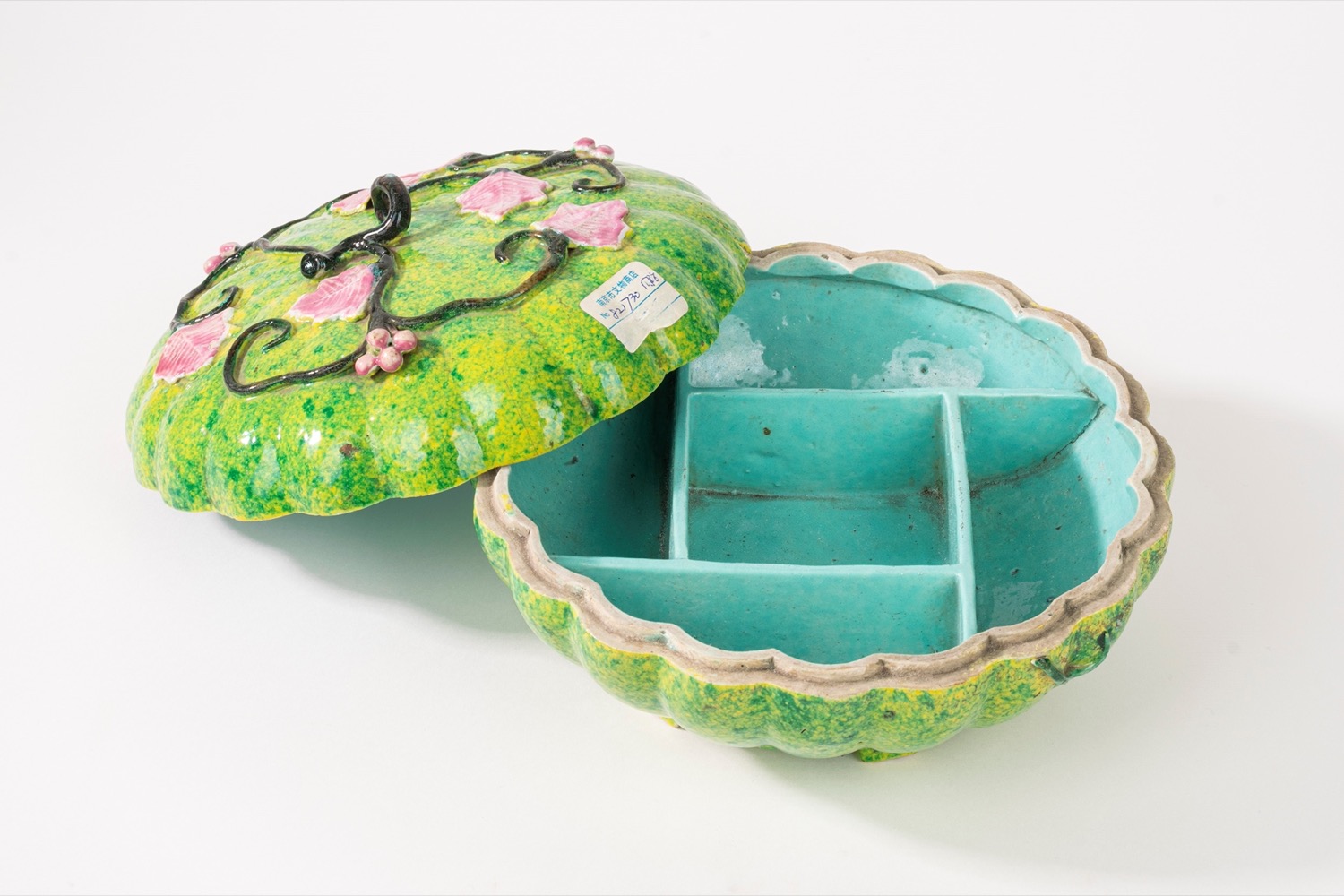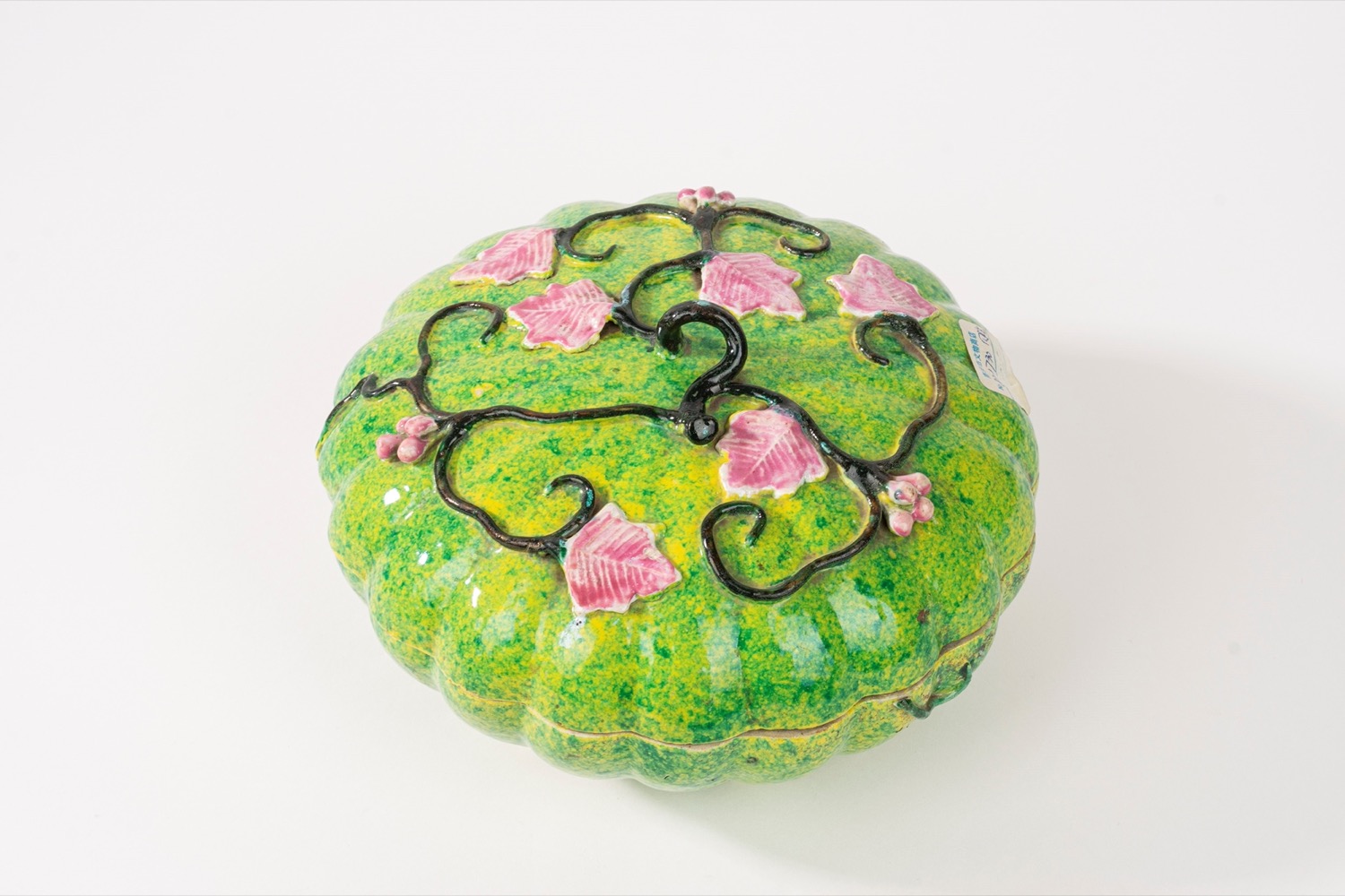 Lotto 339 | Ciotola in ceramica policroma a forma di zucca con coperchio, Cina secolo XX