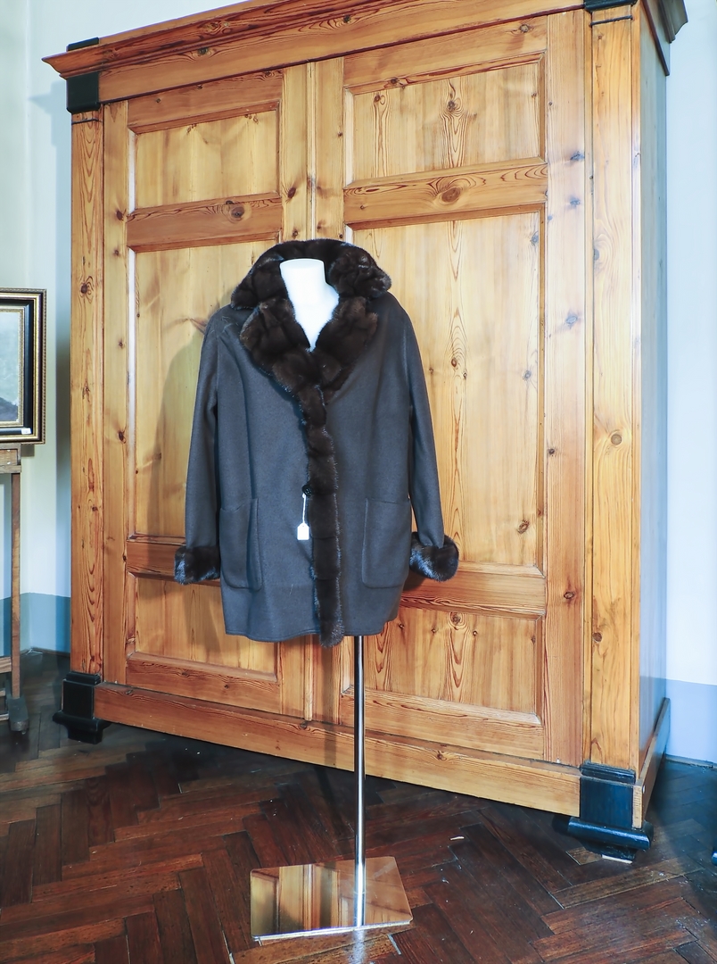 LOTTO VINTAGE composto da un cappotto in panno nero ed un giaccone marrone, entrambi con applicazioni in visone, difetti (2)