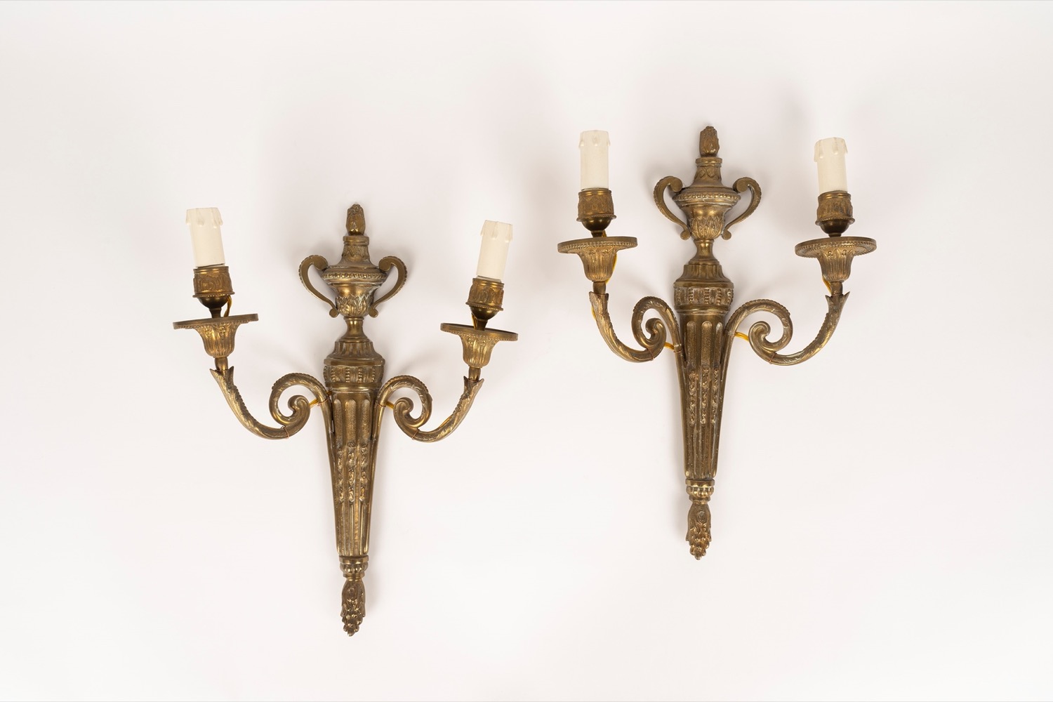 Coppia di applique in bronzo dorato in stile Luigi XVI
