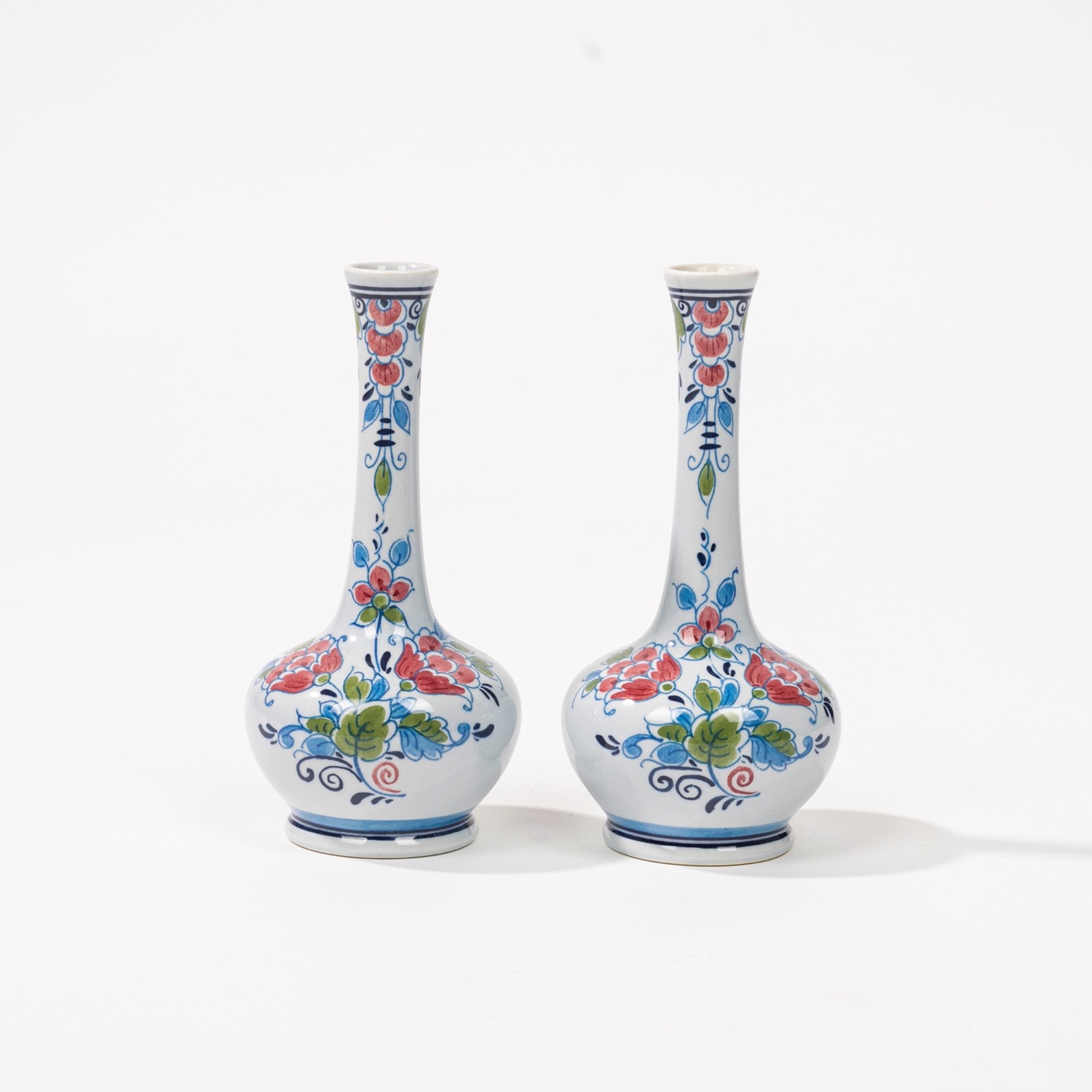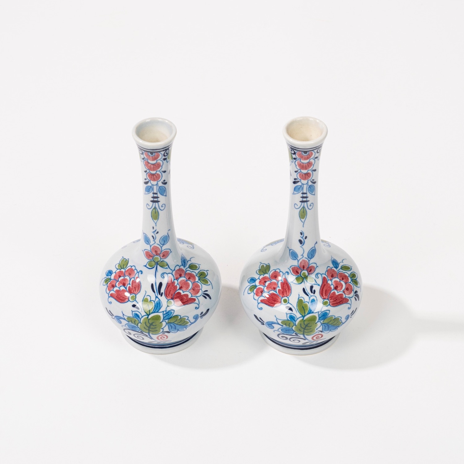 Manifattura Royal Goedewaagen, Delft, Frysia. Coppia di piccoli vasi a bottiglia in porcellana