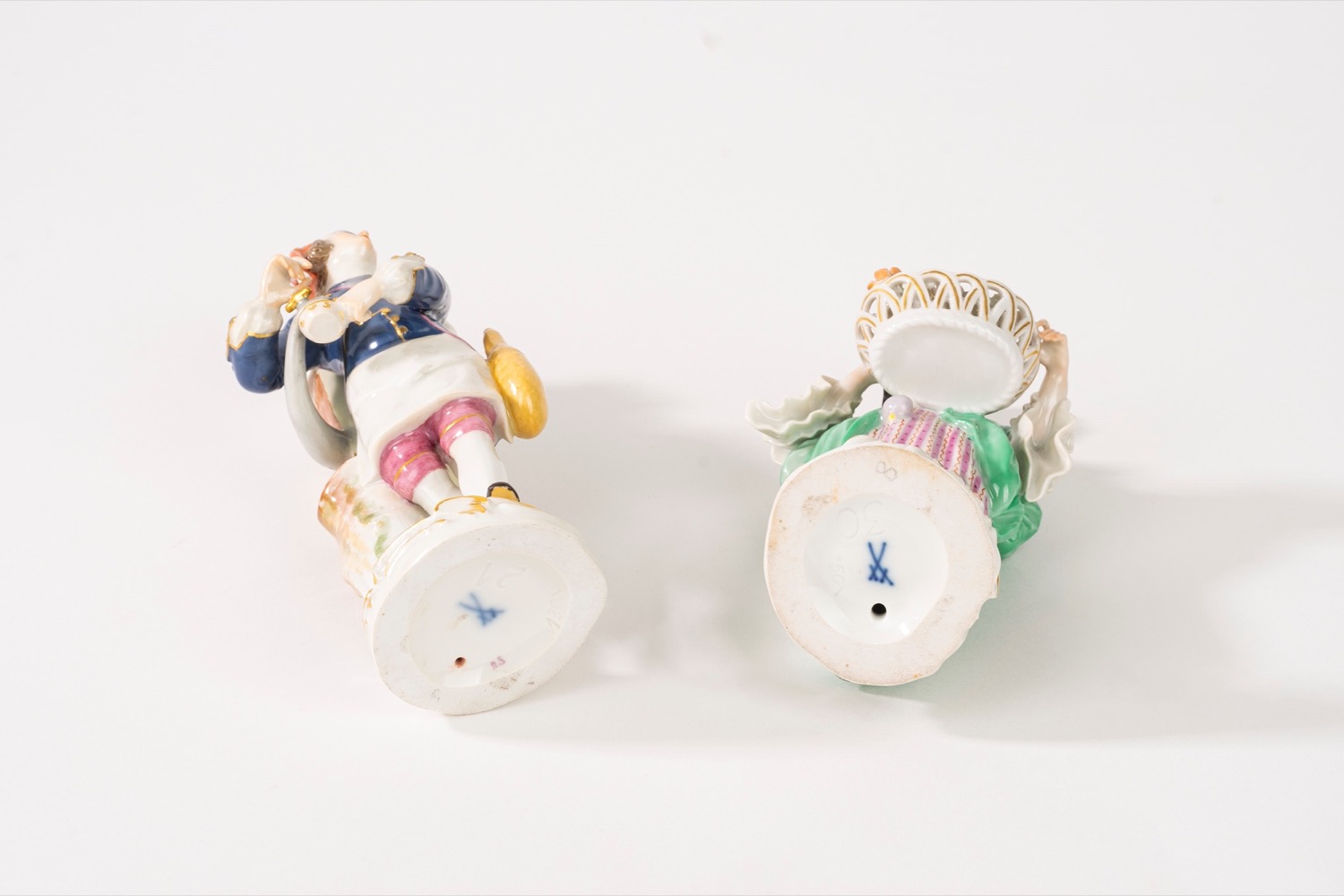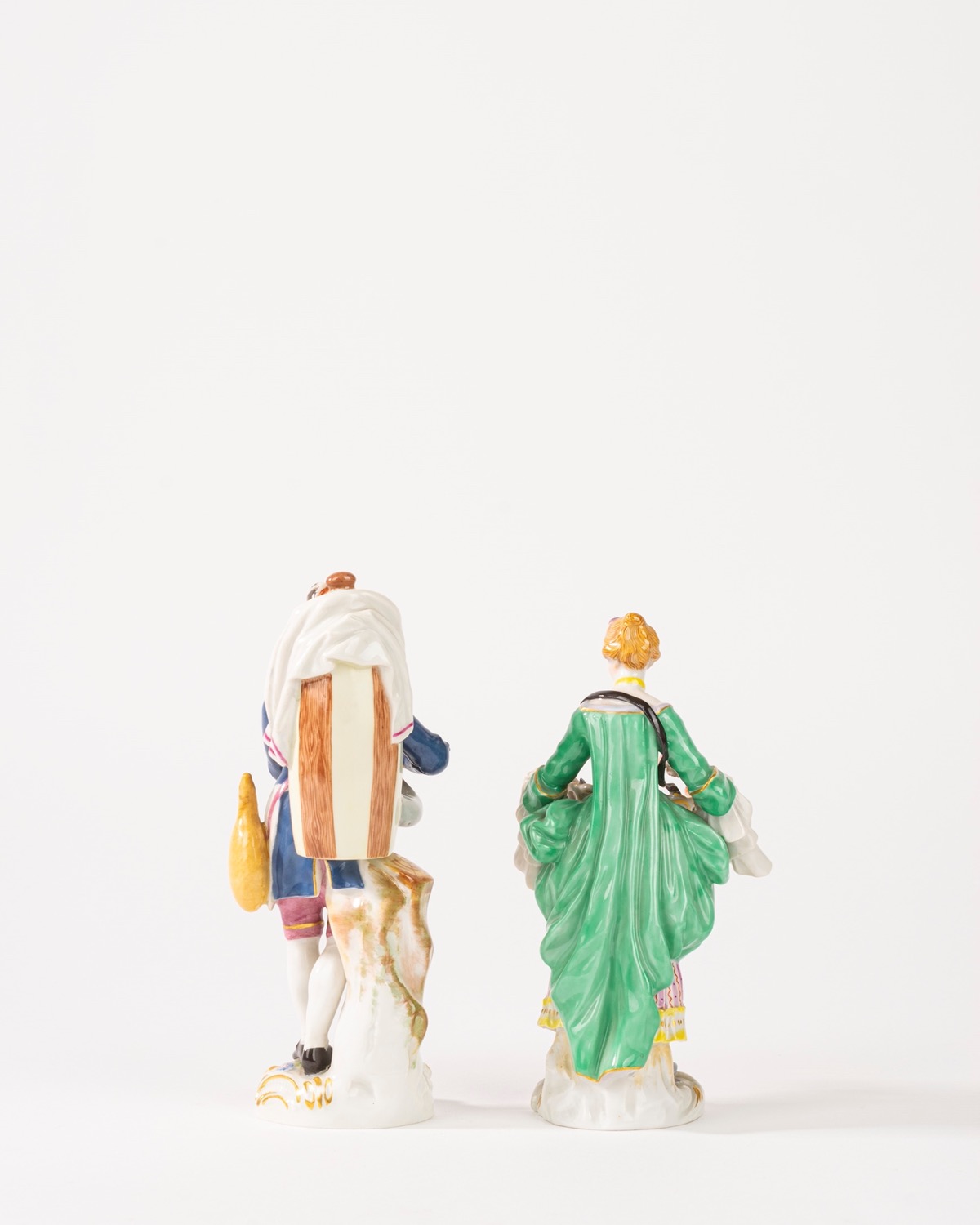 Coppia di figurette in porcellana policroma, manifattura di Meissen, secolo XX