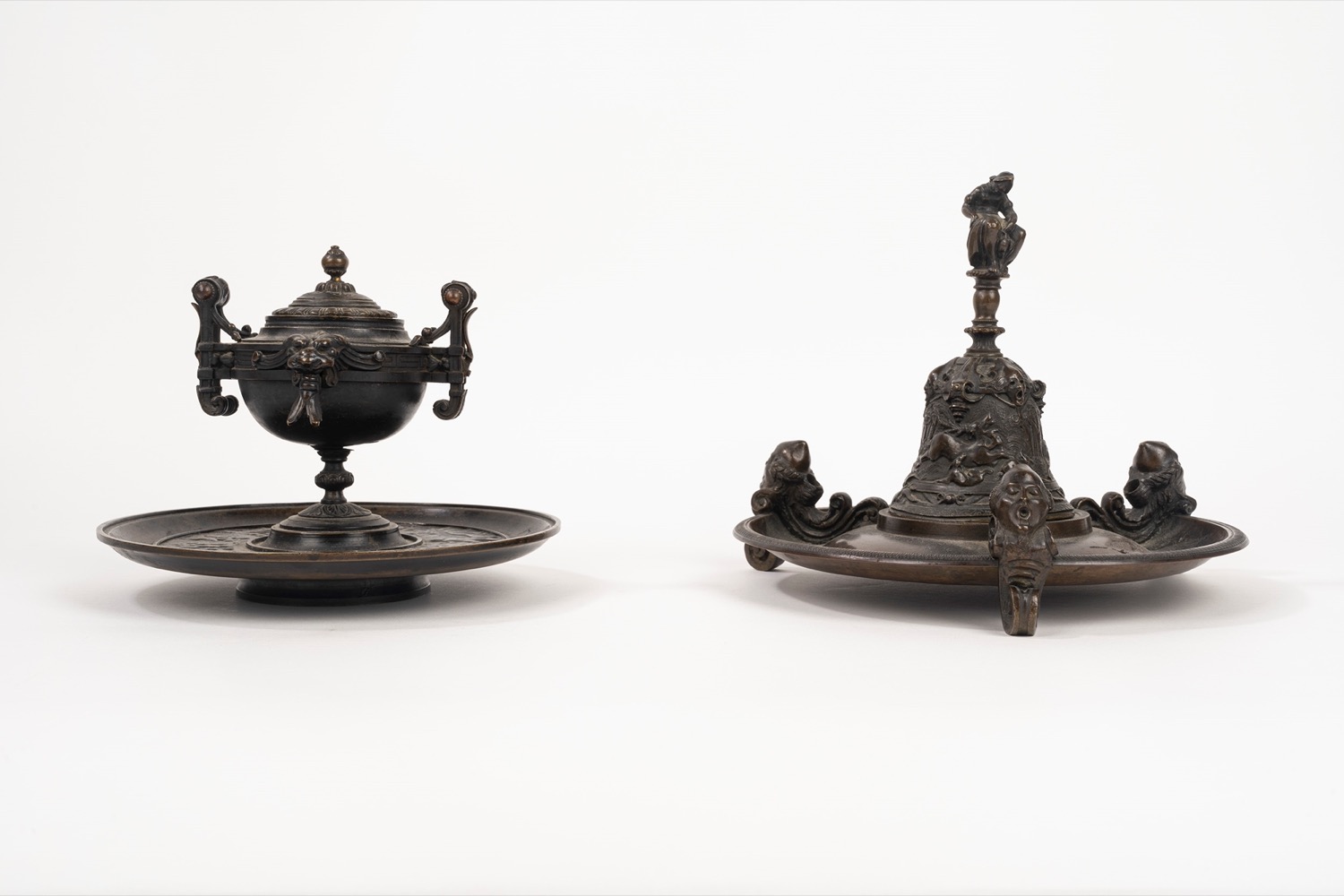 Lotto 397 | Lotto di due oggetti da scrivania: calamaio e campanello in bronzo, secolo XIX