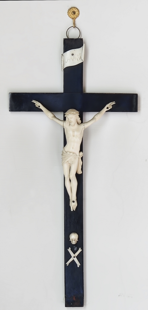 CROCIFISSO IN AVORIO con croce in legno ebanizzato h cm 40
