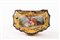 lieve filatura sulla basedecorato con scena galante sul coperchio e paesaggi sui lati, cornici a rocaille e composizioni di trofei musicali in oro