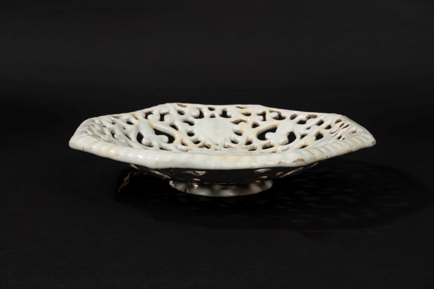 Crespina ottagonale traforata in maiolica azzurrina, Lombardia, secolo XVII