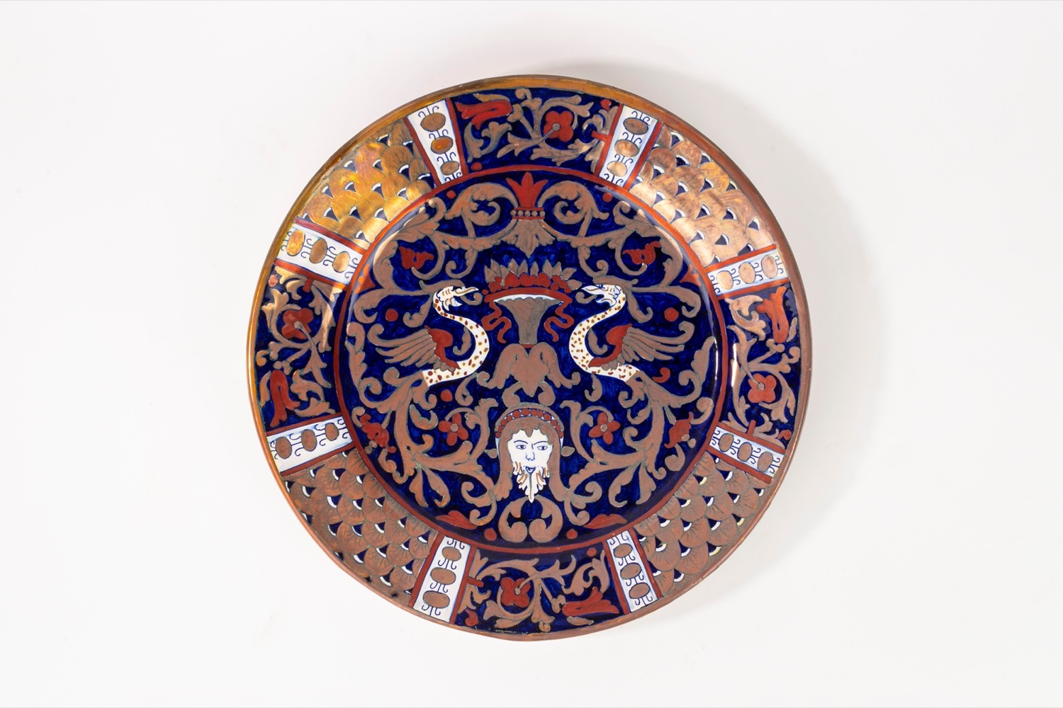Lotto 468 | Piatto da parata in maiolica a lustro. Alberto Rubboli, Gualdo Tadino, fine secolo XIX/XX