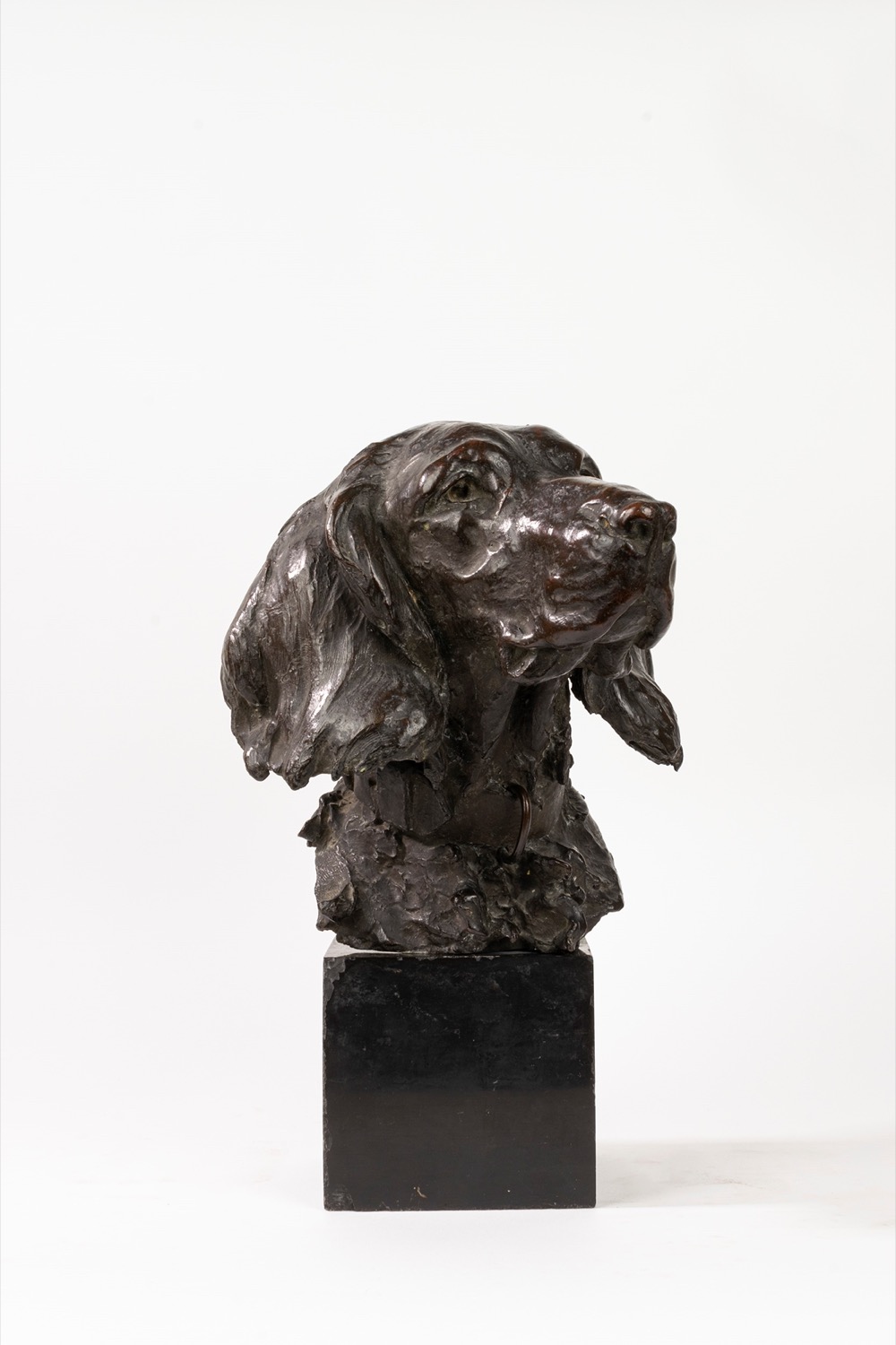 firmato Laforet sul guinzaglio. Poggiante su base cubica in marmo nero (lievi difetti)firmato Laforet sul guinzaglio. Poggiante su base cubica in marmo nero (lievi difetti)