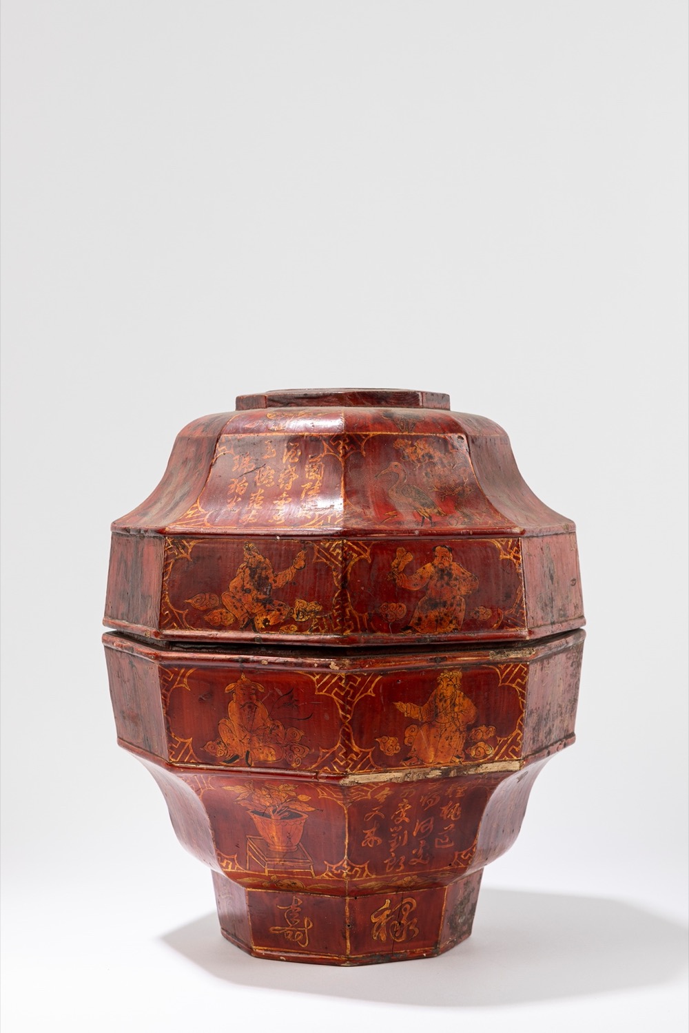 SCATOLA PORTAVIVANDE IN LEGNO LACCATO ROSSO E ORO, China, 20th century