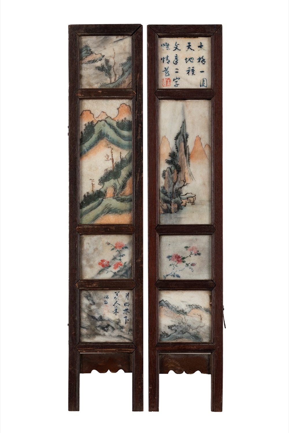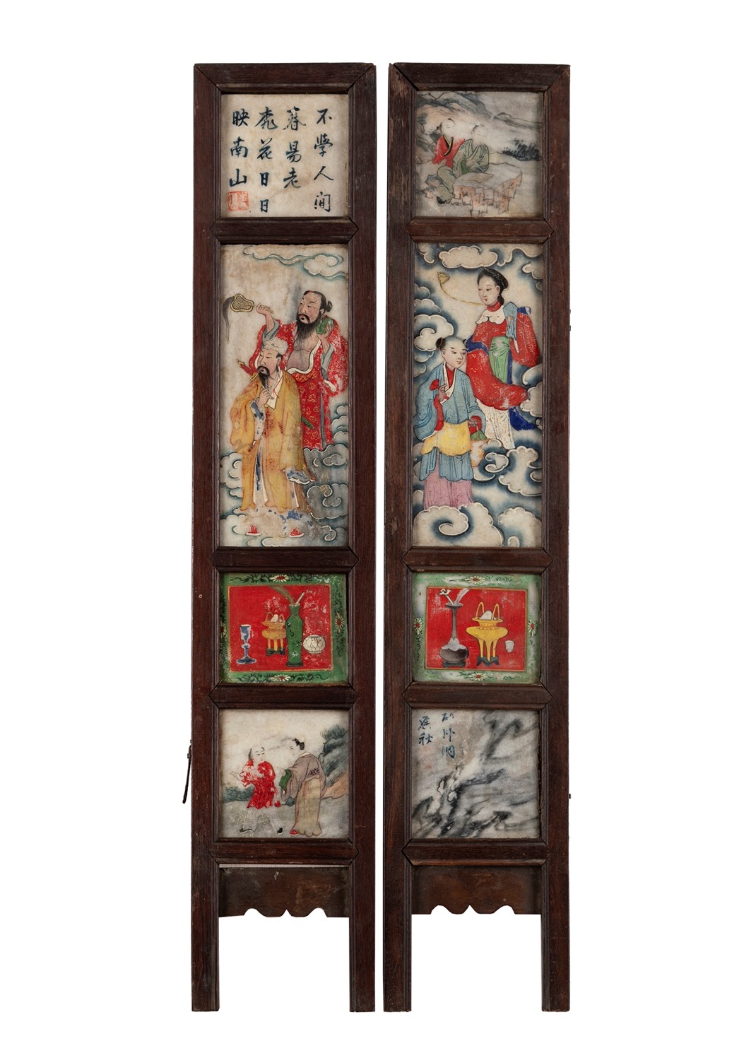 Composto da otto placche in porcellana raffiguranti figure di saggi, dame e iscrizioni.Composto da otto placche in porcellana raffiguranti figure di saggi, dame e iscrizioni.
