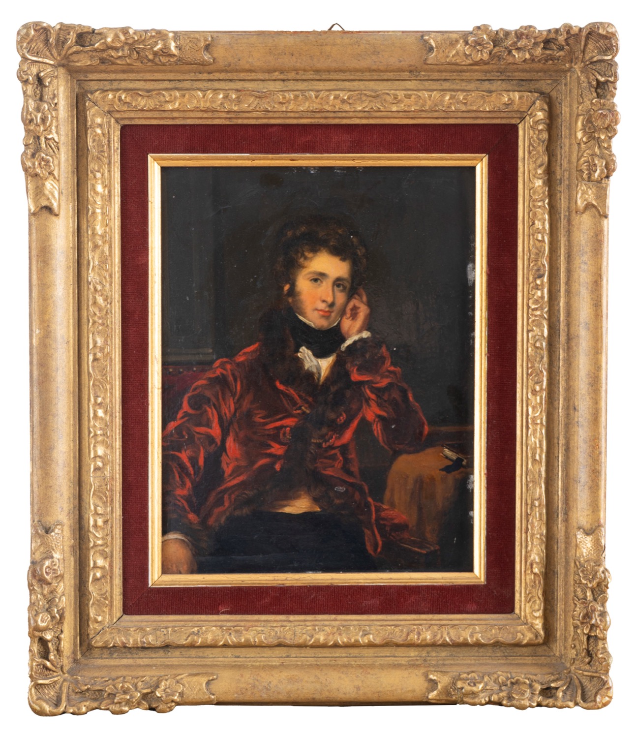 Scuola italiana, secolo XIX - Ritratto di gentiluomo in giacca da camera rossa
