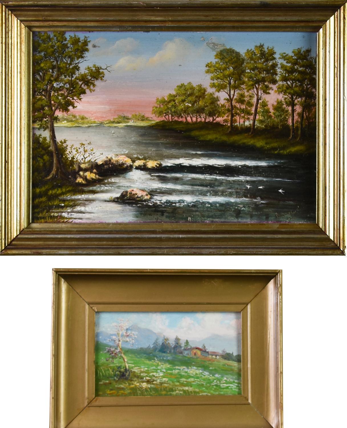 LOTTO DI DUE OPERE costituito da: P. Luigi Martorelli - PAESAGGIO CON FIUME,...