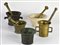 Mortaio in ottone con due manici squadrati e pestello anch'esso in ottone, Italia, prima metà del XIX