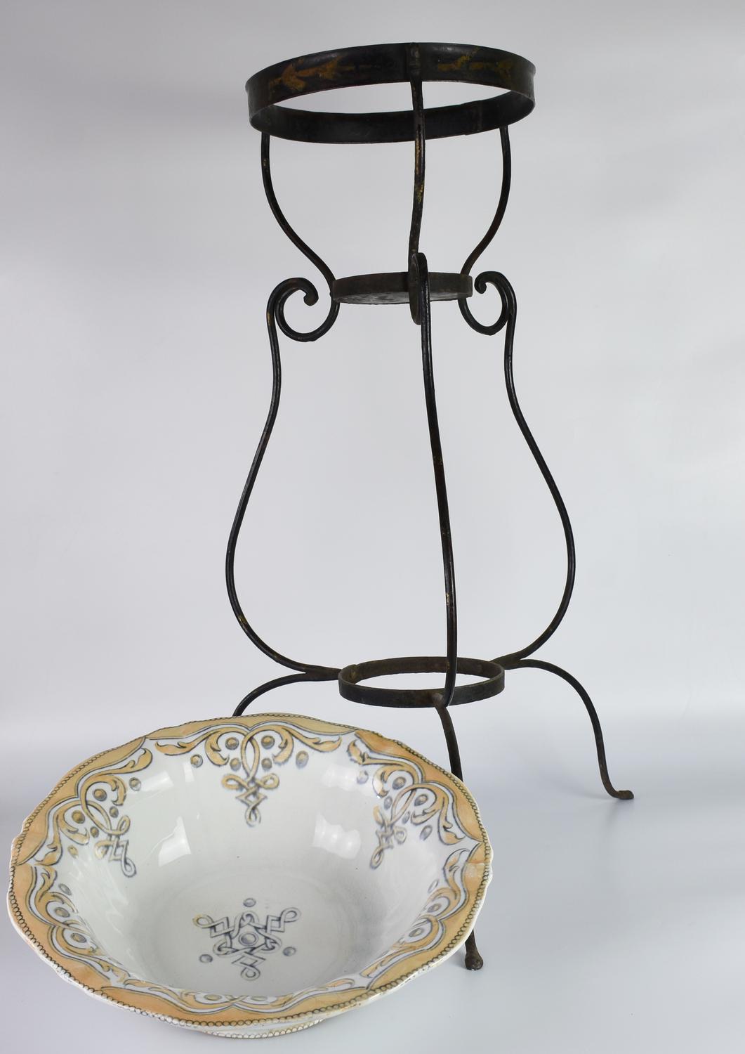 PORTACATINO IN FERRO BATTUTO E CATINO IN CERAMICA
