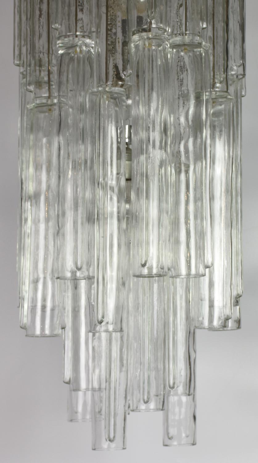 LAMPADARIO A SOSPENSIONE IN VETRO DI MURANO, anni '60 del XX secolo acciaio e...