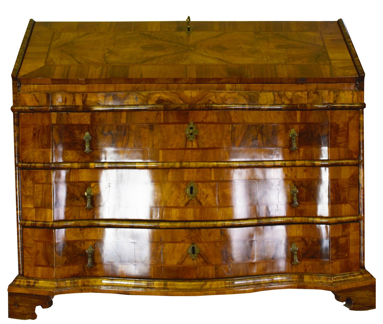 RIBALTA, area lombardo-veneta, prima metà del XVIII secolo lastronata in radica di noce con filettaure in ciliegio, fronte mosso, scarabattolo con cassettini e vano a giorno