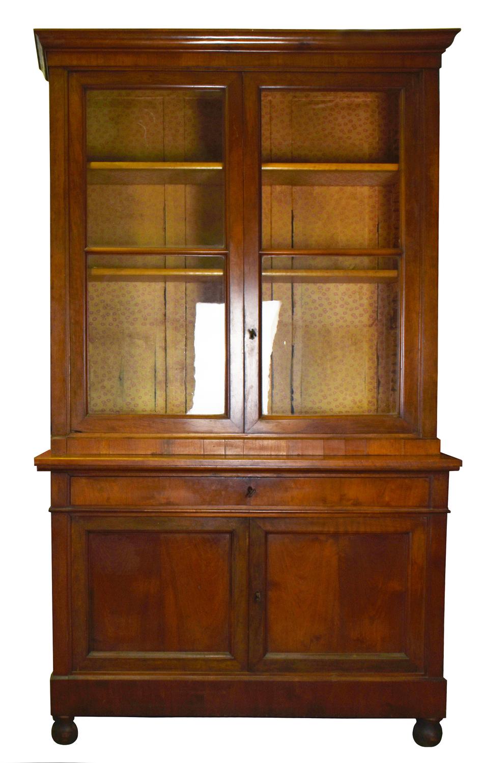 VETRINA LUIGI FILIPPO,Italia metà XIX secolo noce massello, struttura a due...