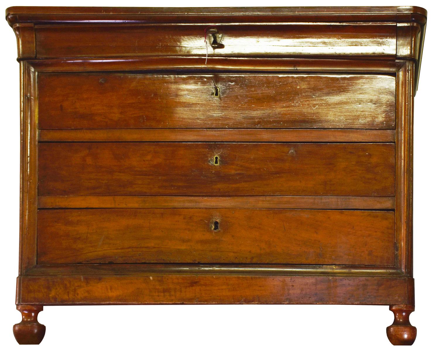 COMO' CAPUCCINO, Lombardia, 1840-1860 stile Luigi Filippo in noce massello, struttura a quattro cassetti di cui il primo più piccolo nella fascia a gola di tulipano, piedi torniti