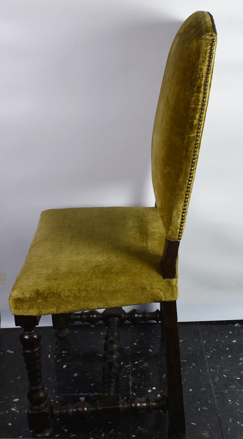 legno, gambe tornite, schienale alto e seduta rivestiti