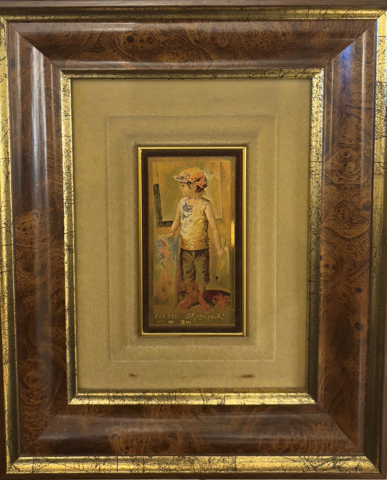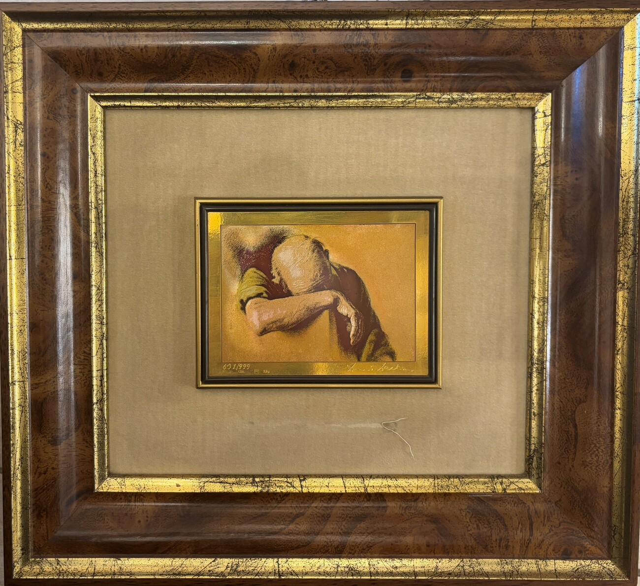 Dino Decca - Giancarlo Vitali (1928 - 2018) , (1935 - 2005) Tre incisioni su lastre d'oro 750 Kt incisione su lastra dorata 10 x 5 cm; 7,5 x 10 cm