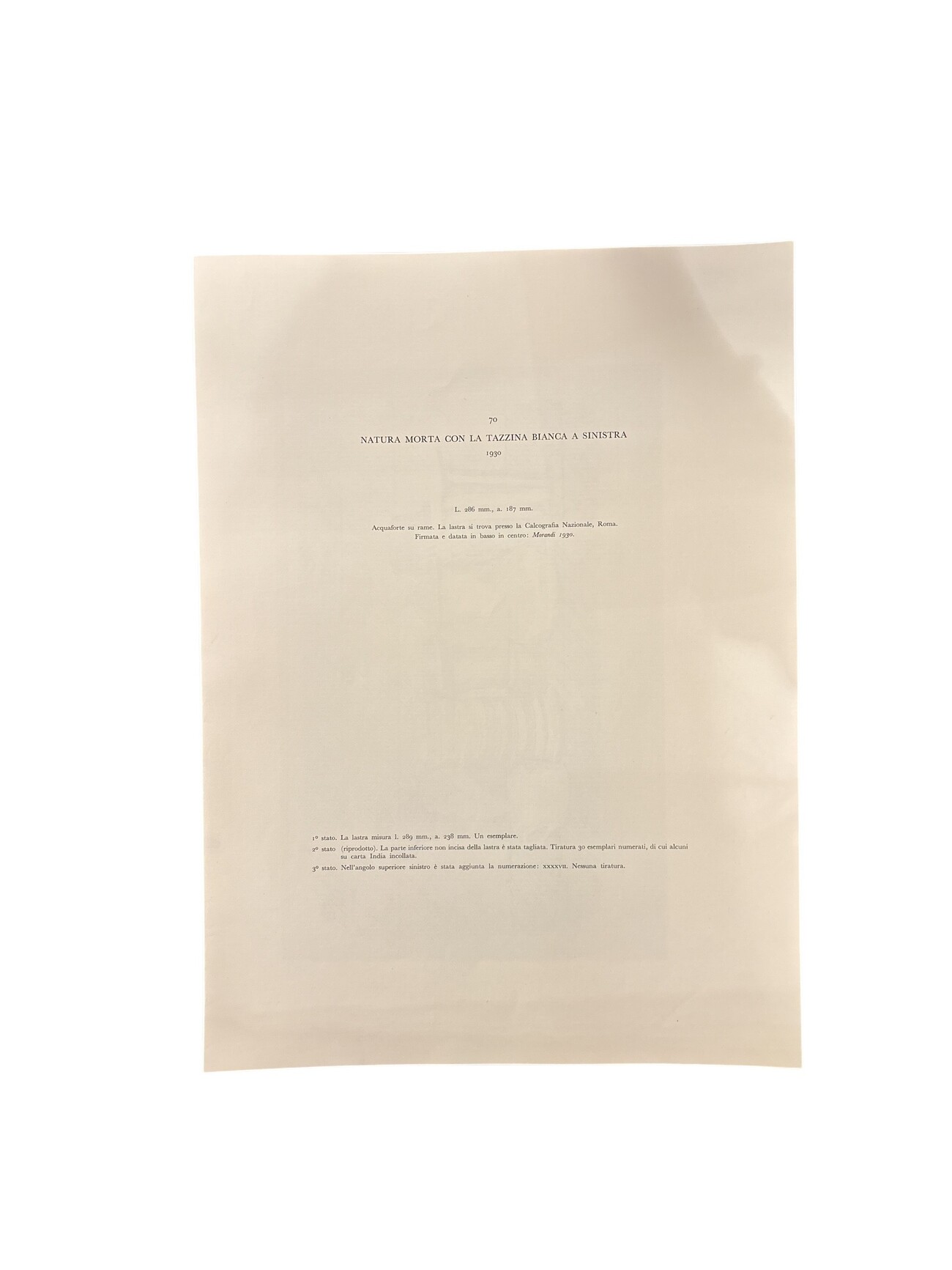 Giorgio Morandi (dapres) (1890 - 1964) Natura morta con tazzina bianca a sinistra - 1930 1957 litografia 287 x 392 mm