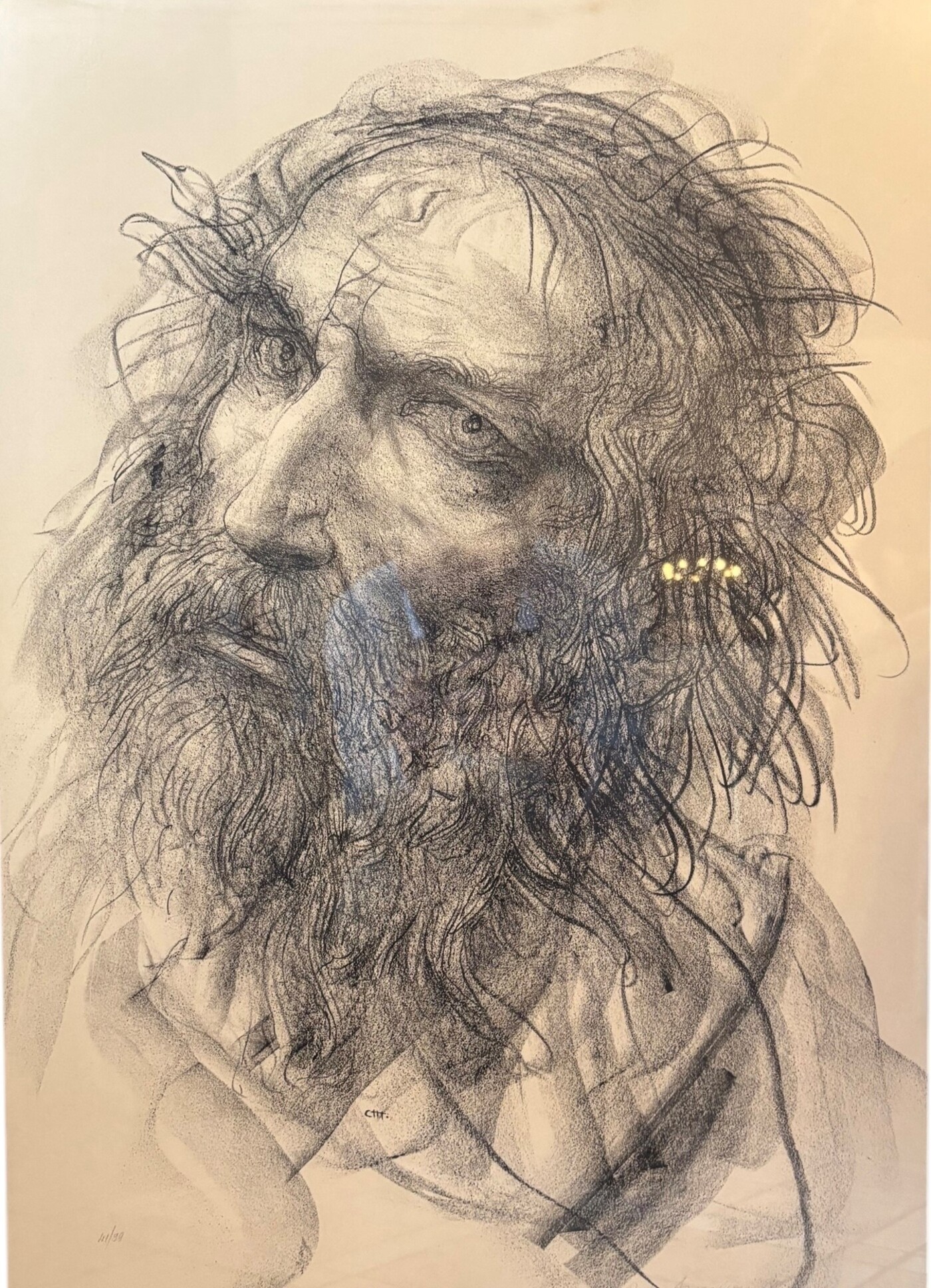 Pietro Annigoni (1910 - 1988) Testa di uomo litografia 70 x 50 cm
