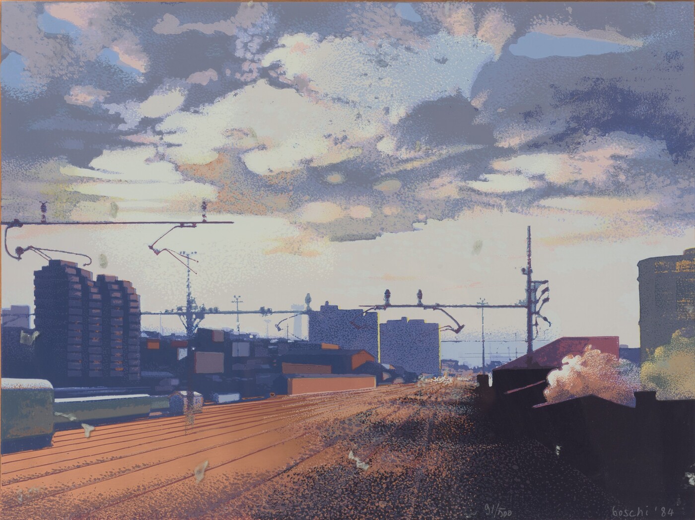 Dino Boschi (1923 - 2015) Ferrovia 1984 Multiplo, incisione su lastra di rame 48 x 60 cm con cornice