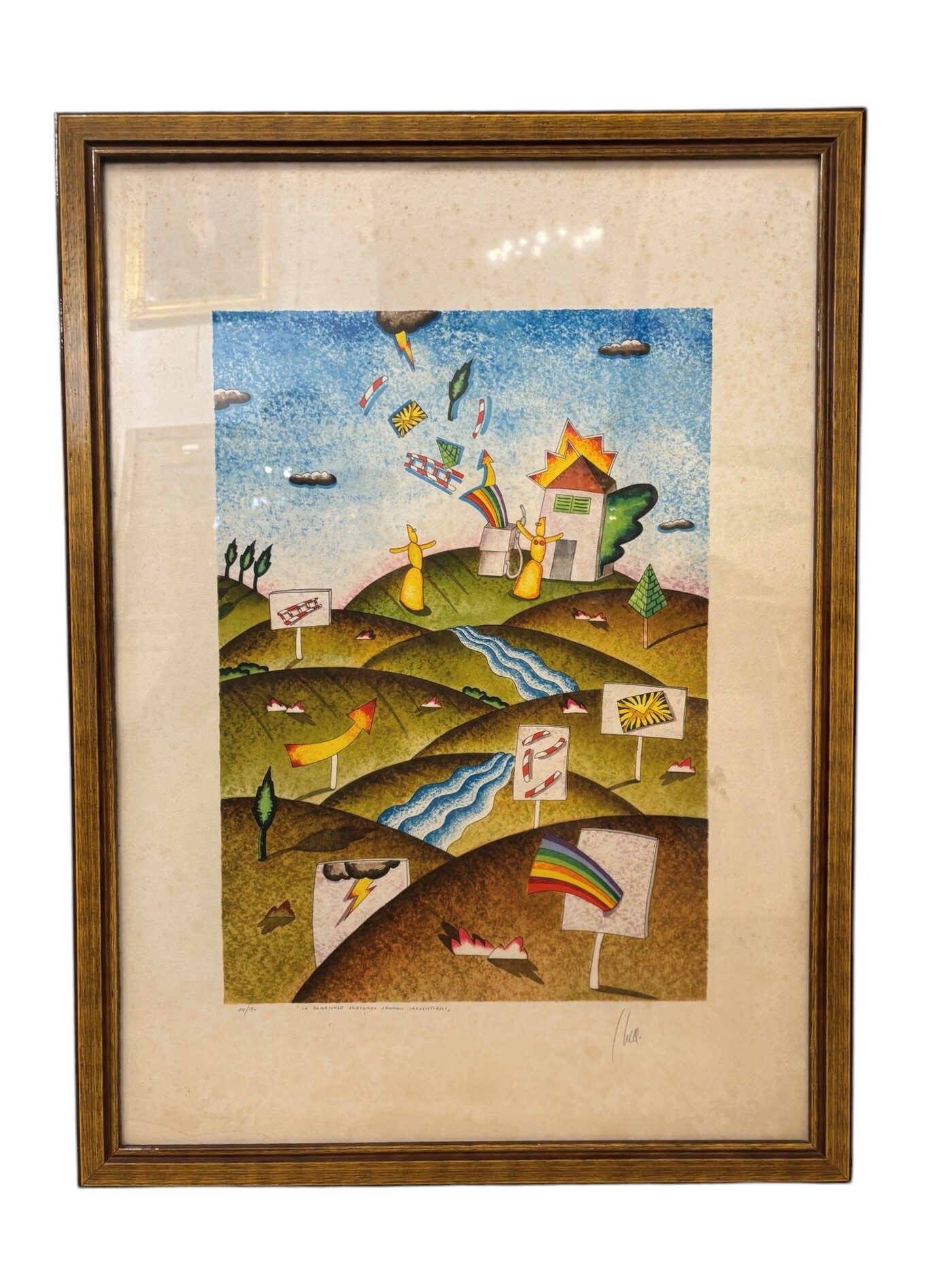 Giuliano Ghelli (1944 - 2014) La raggiunse seguendo segnali irresistibili litografia 70 x 50 cm